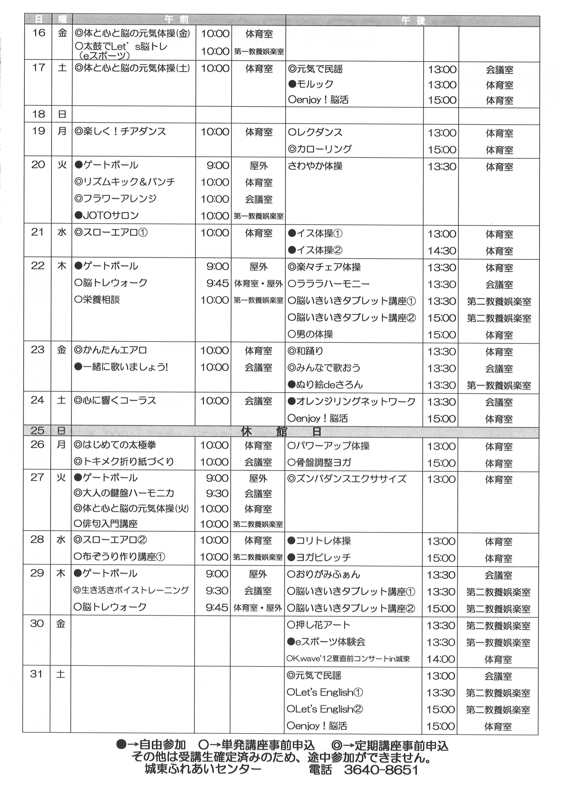 2025.04.25 お知らせ 城東ふれあいセンター 予定表5月号 Tweet シェアする 城東ふれあいセンターの5月の予定表をお知らせいたします! 城東ふれあいセンター Y.R 前の記事 2025.04.25 お知らせ 押し花アート 次の記事 2025.04.25 お知らせ 城東ふれあいセンター おたより5月号 一覧へ戻る