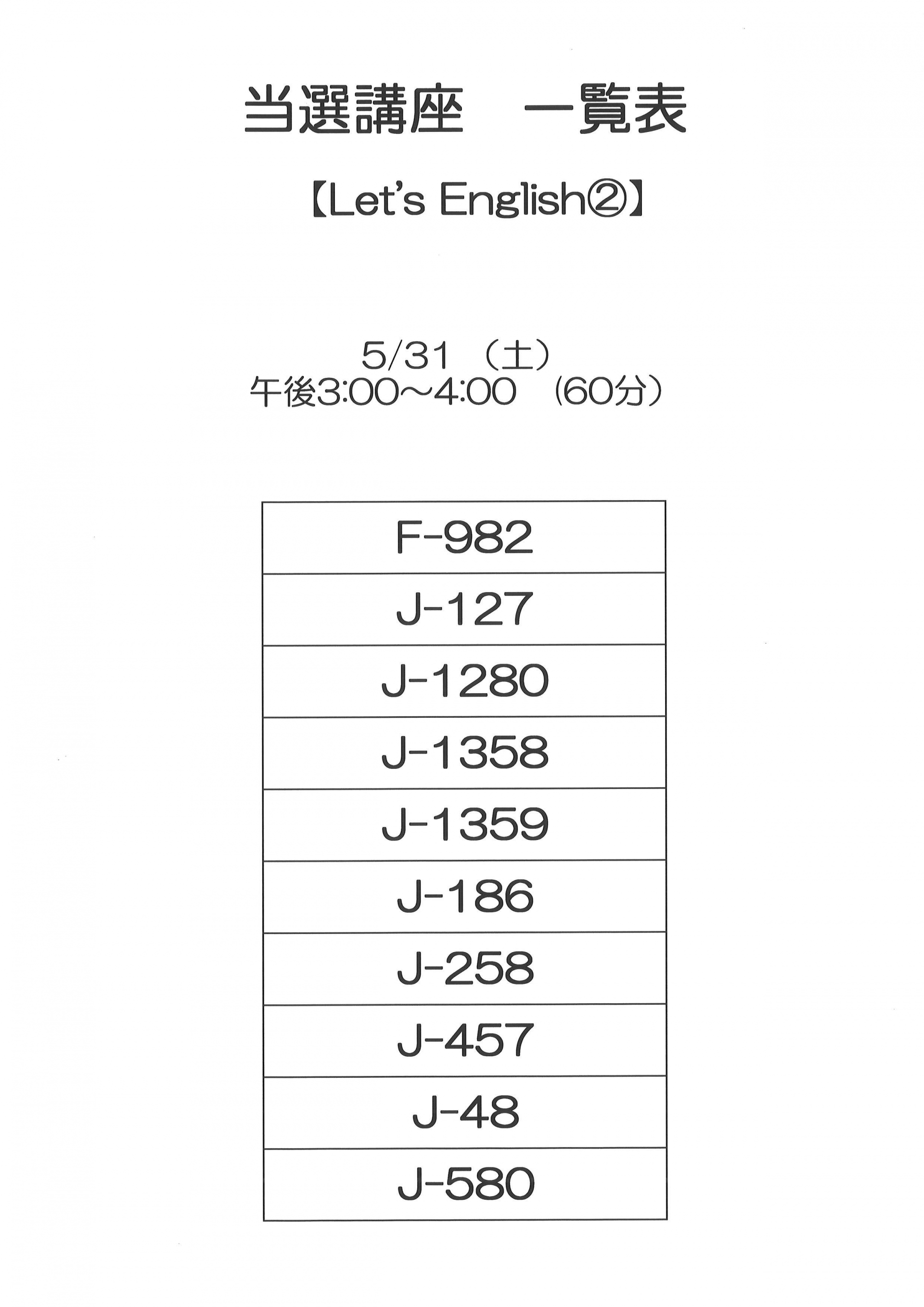 2025.05.07 活動報告 5月・6月開催 単発講座 当選者一覧 Tweet シェアする こんにちは!! 5月・6月開催 単発講座の当選者一覧です。 どうぞご確認ください。 城東ふれあいセンター T.Y 前の記事 2025.05.07 活動報告 春のenjoy!コンサート 次の記事 2025.05.06 活動報告 大型連休最終日 一覧へ戻る