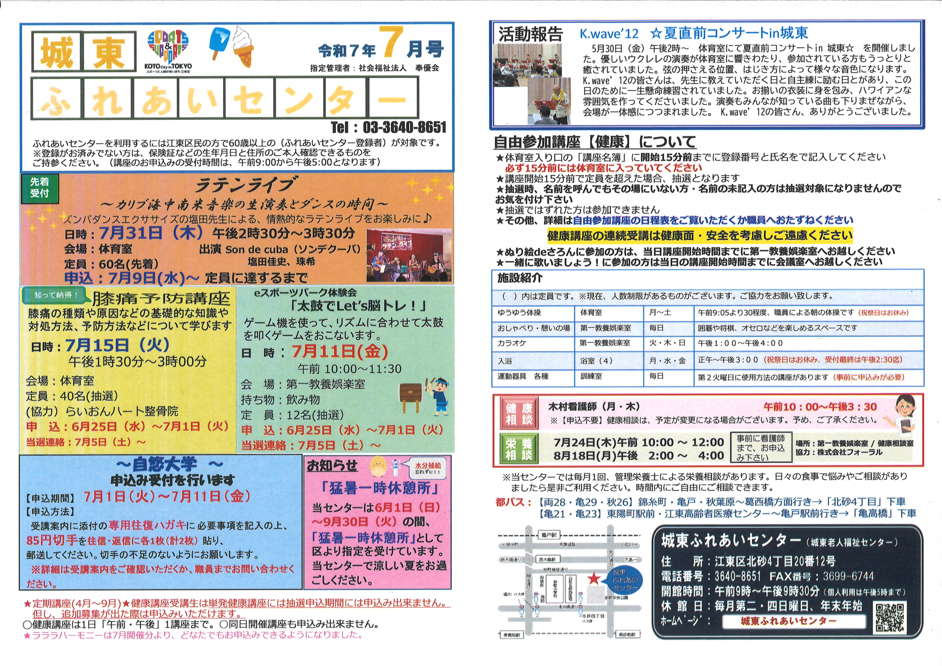 2025.06.25 お知らせ 城東ふれあいセンターおたより7月号 Tweet シェアする 城東ふれあいセンターのおたより7月号が完成いたしました\(^o^)/皆さんのお申込をお待ちしております! 城東ふれあいセンター O.M 前の記事 2025.06.25 お知らせ 城東ふれあいセンター 7月予定表 次の記事 2025.06.24 お知らせ 7月開講 3ヶ月講座【男の体操】追加募集のご案内 一覧へ戻る