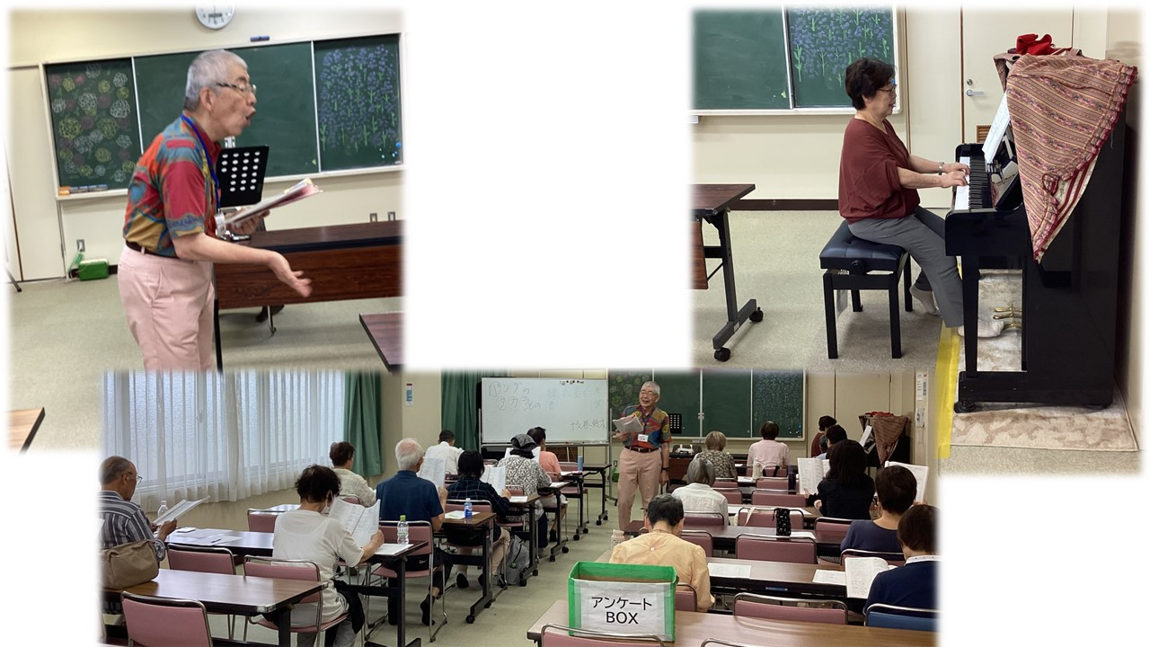 毎月歌う曲目は違うので、この日は25名近く参加されました。暑い中ありがとうございます。