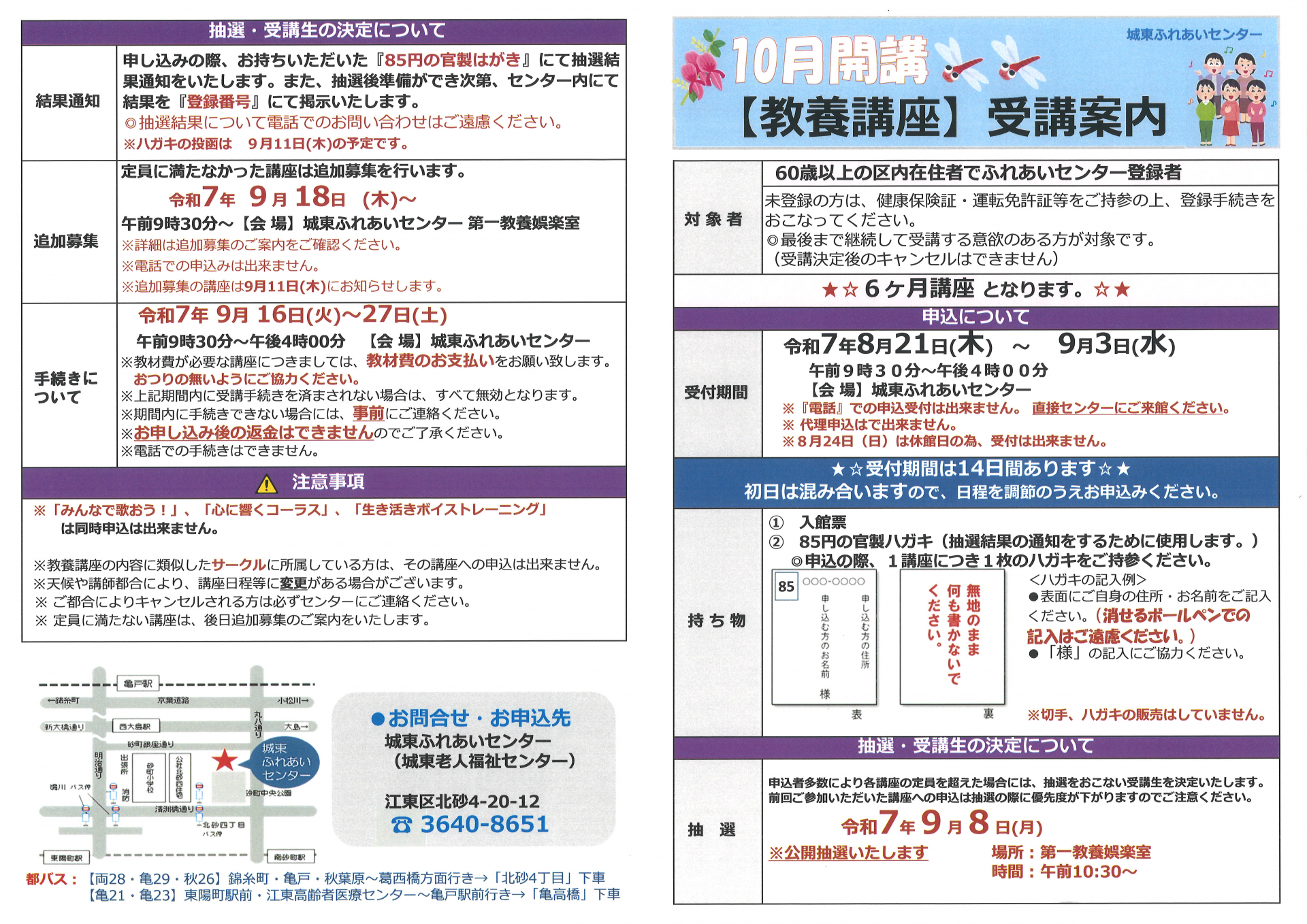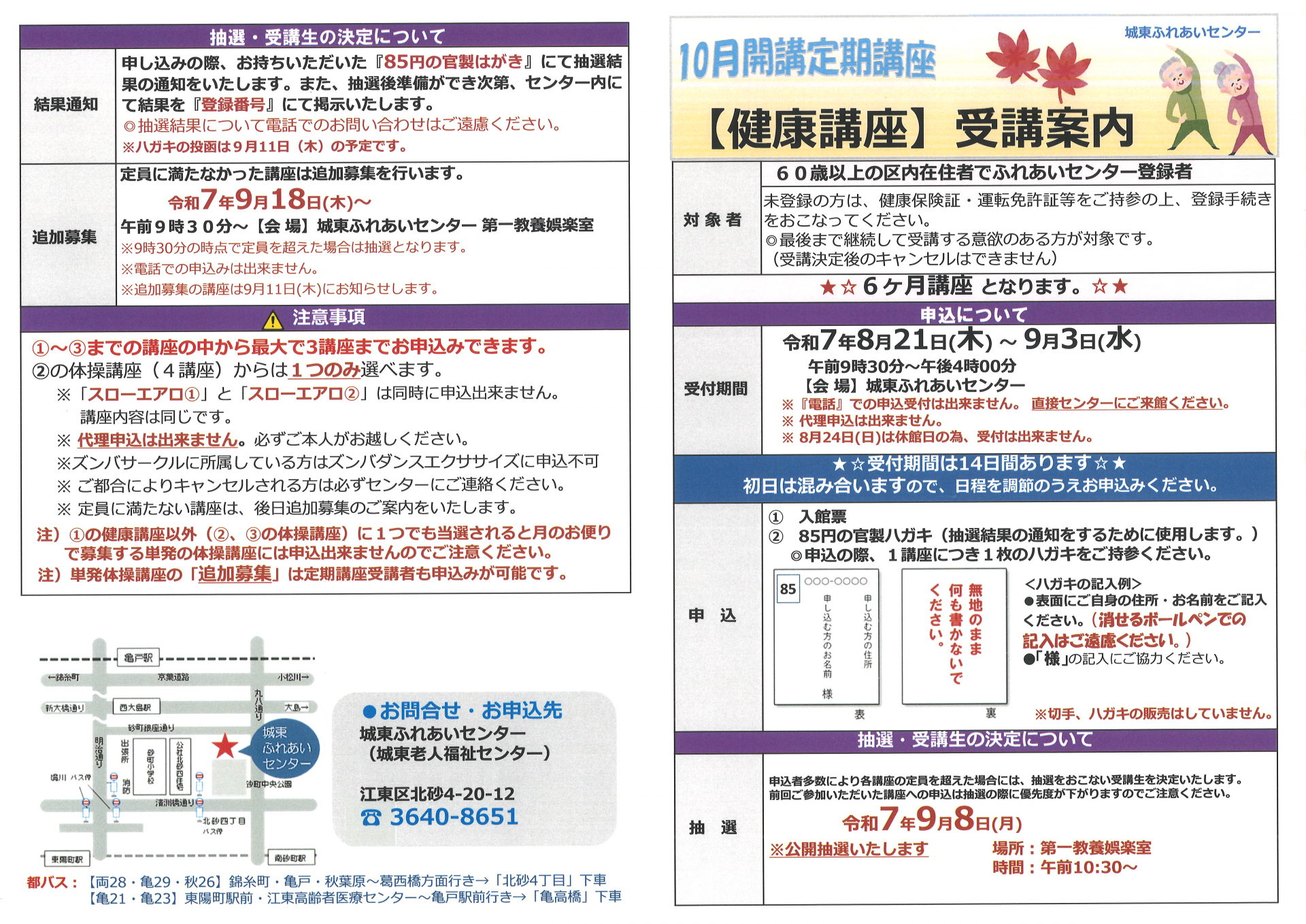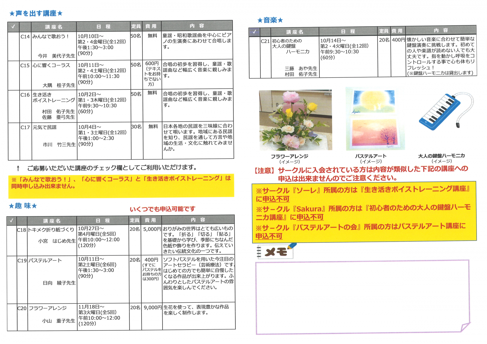 令和7年10月~令和8年3月開催の【秋の定期講座】のお申込みが始まります。