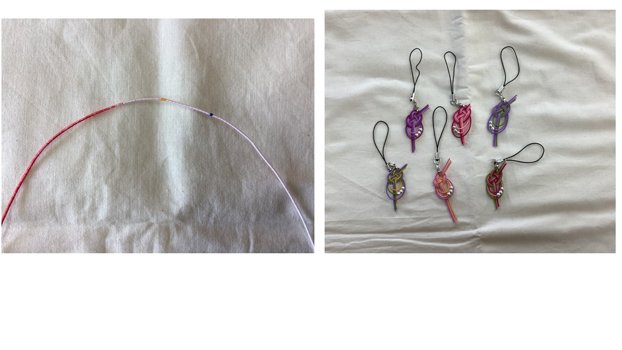 1本ずつの水引を見るのと、組み合わせて作品になるのとでは色のイメージが変わりますね。