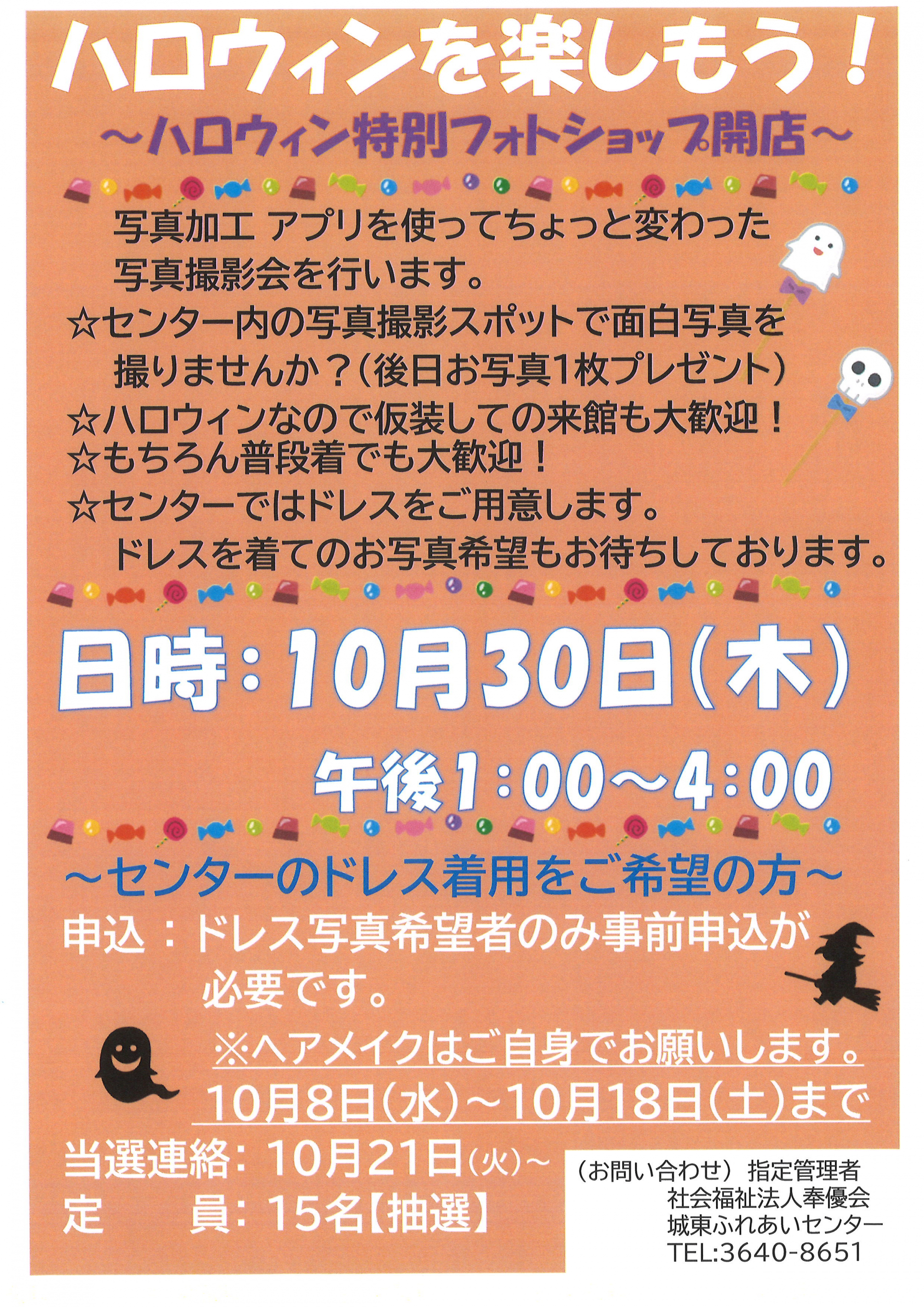 【ハロウィンを楽しもう!~ハロウィン特別フォトショップ開店~】を開催します。