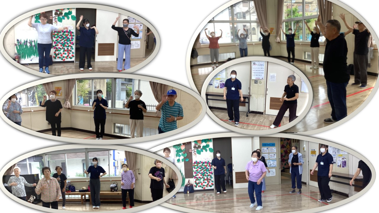 ラジオ体操、水彩音頭、ズンドコ節、音楽に合わせて体を動かすのが大好きな利用者さん。