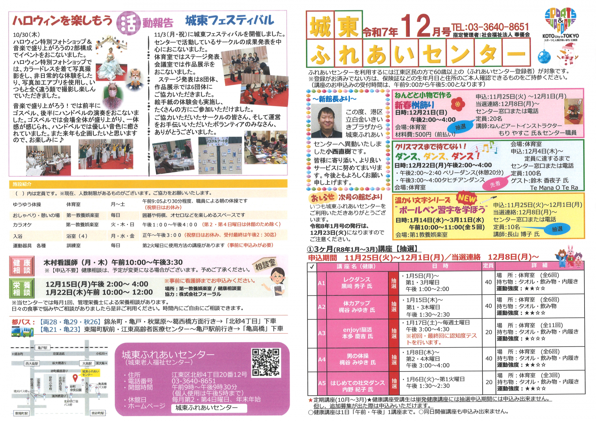 城東ふれあいセンターのおたより12月号が完成しました\(^o^)/
