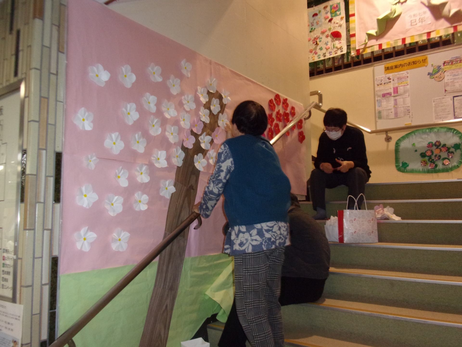 階段左側を、新年に向けて『梅の木』に装飾しました(^_^)