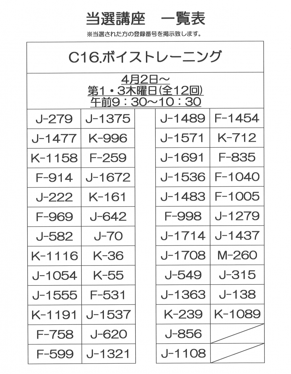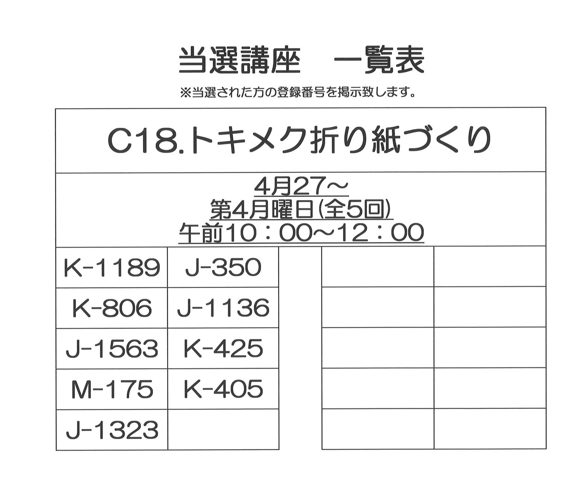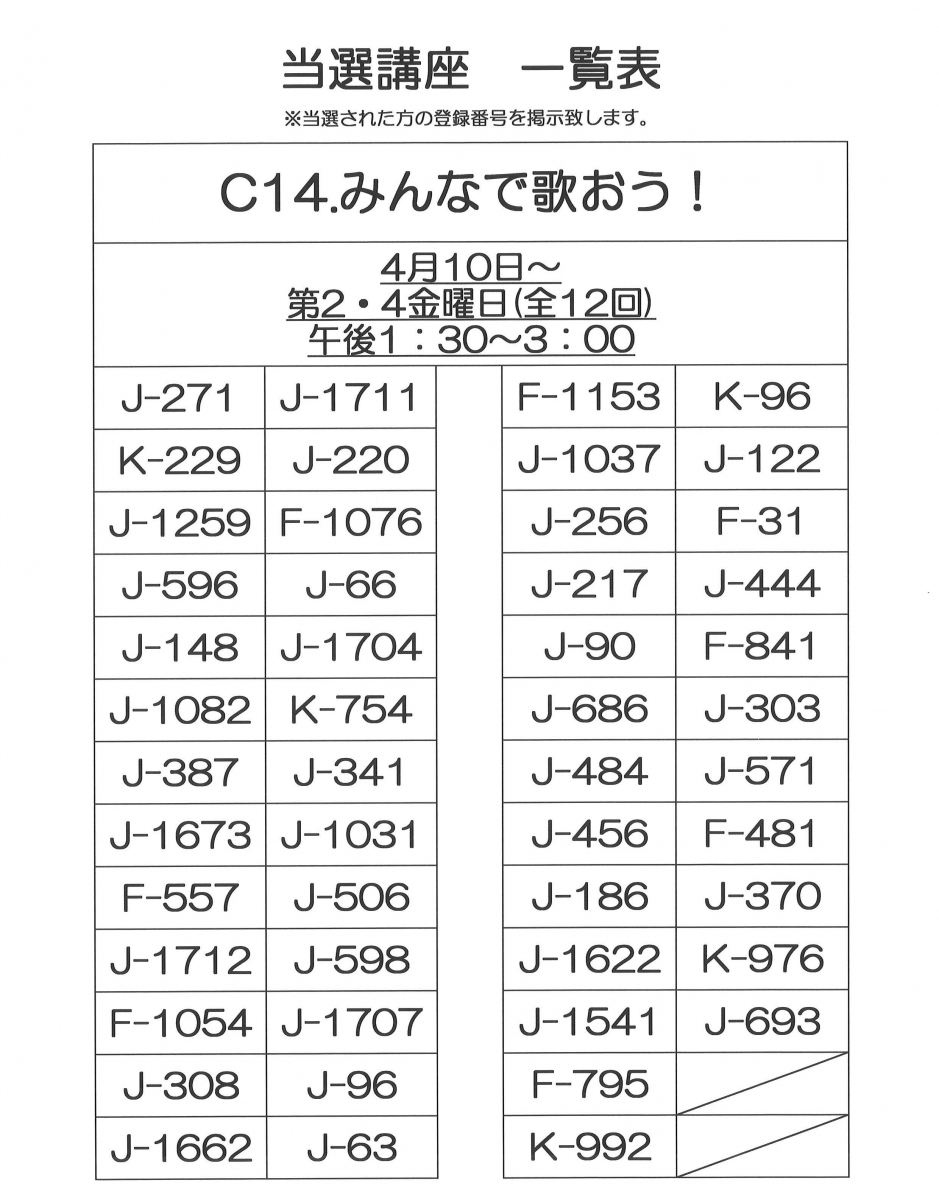 お手続きが必要な講座もありますので、お手続き期間にセンター窓口までお越しください。
