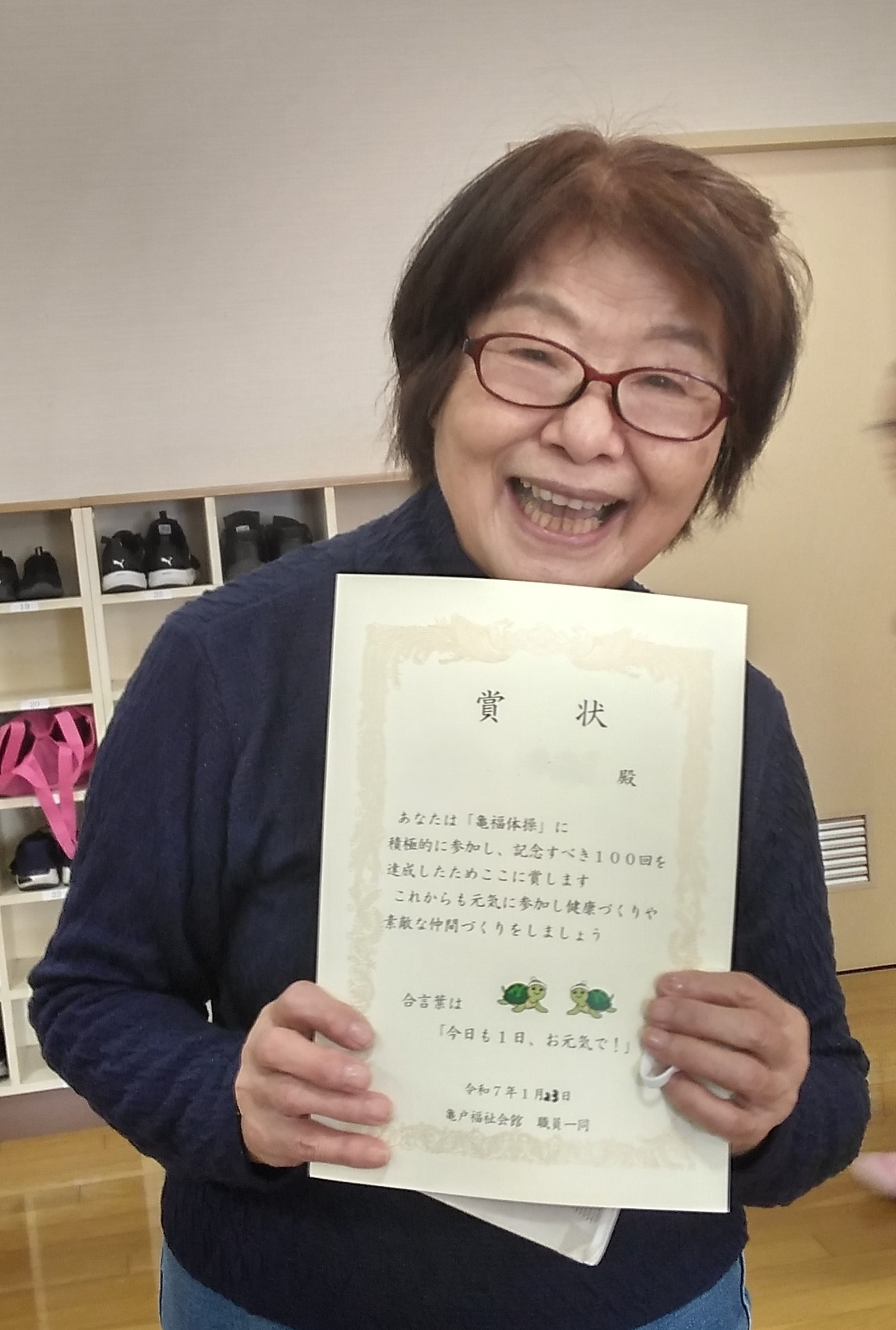 2025.01.24 活動報告 亀福ポイントカード100回達成しました! Tweet シェアする 1月23日(木)利用者のKさんが亀福ポイントカード100回達成、おめでとうございます!!これからも200回、300回を目指して頑張ってくださ~い!! 亀戸福祉会館 Y.H 前の記事 2025.01.25 活動報告 お知らせ2月号を発行しました。 次の記事 2025.01.24 活動報告 おりがみ「ふじの会」が開催されました。 一覧へ戻る