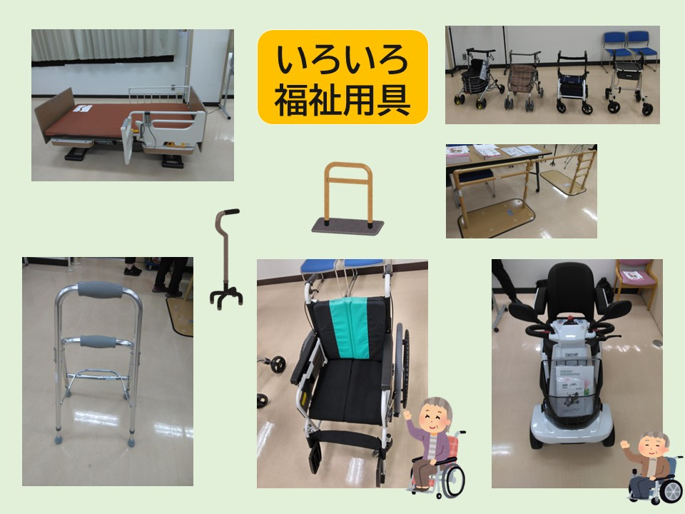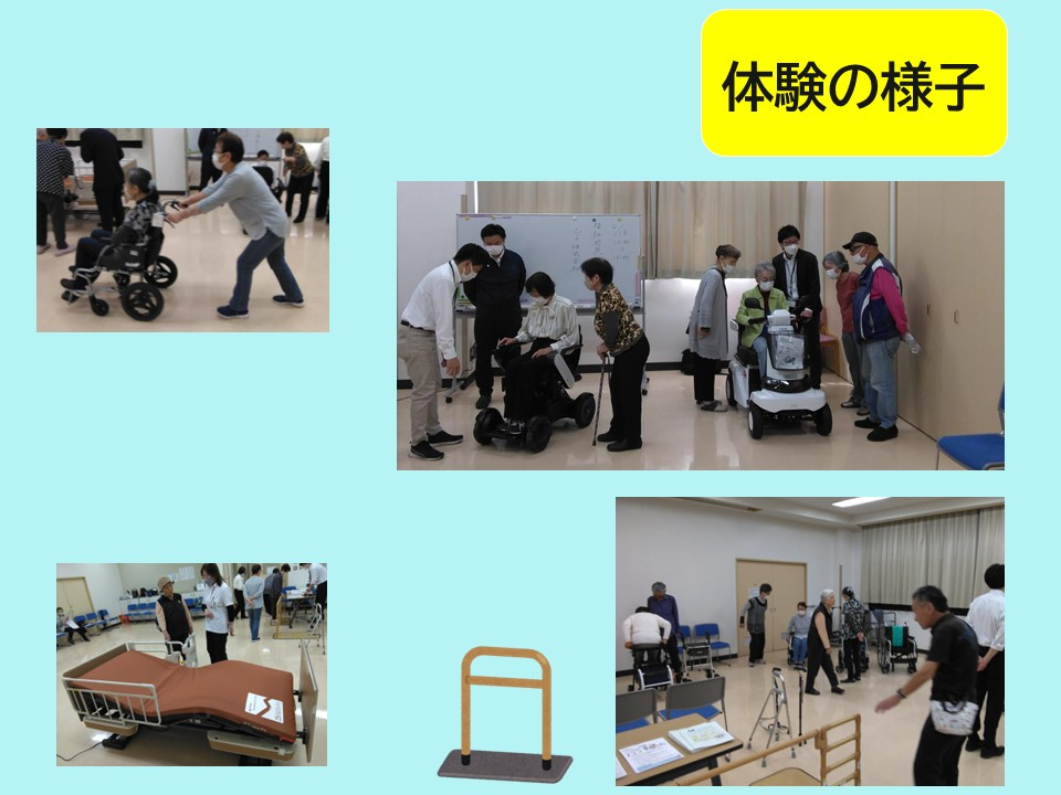 車いす・電動車いす・歩行器・歩行補助杖・ベッドを展示。そして実際に試乗したり、使用していただきました。様子をご覧ください。