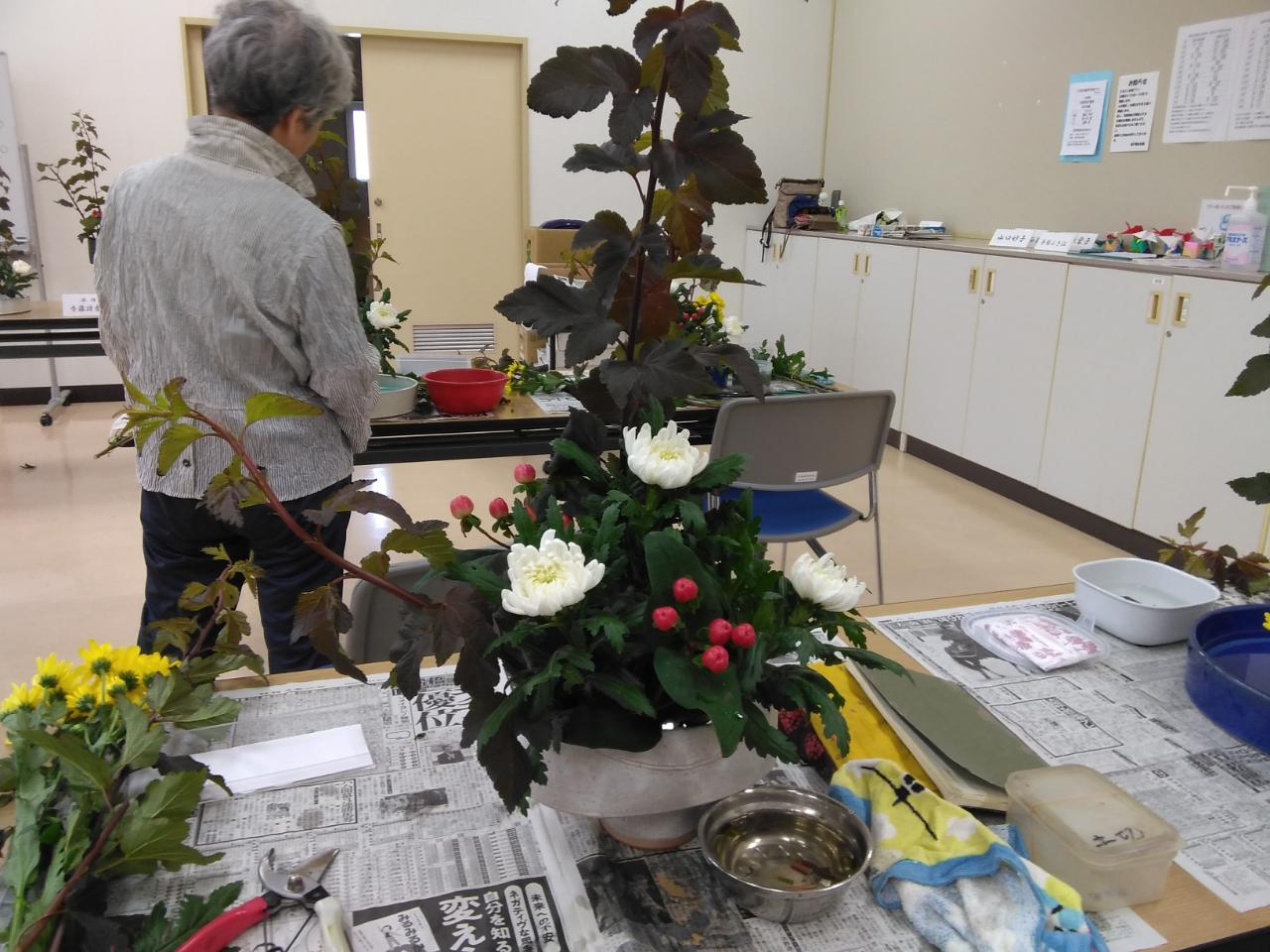 花器を変えて何種類かの生け方を先生が見せてくださいました。