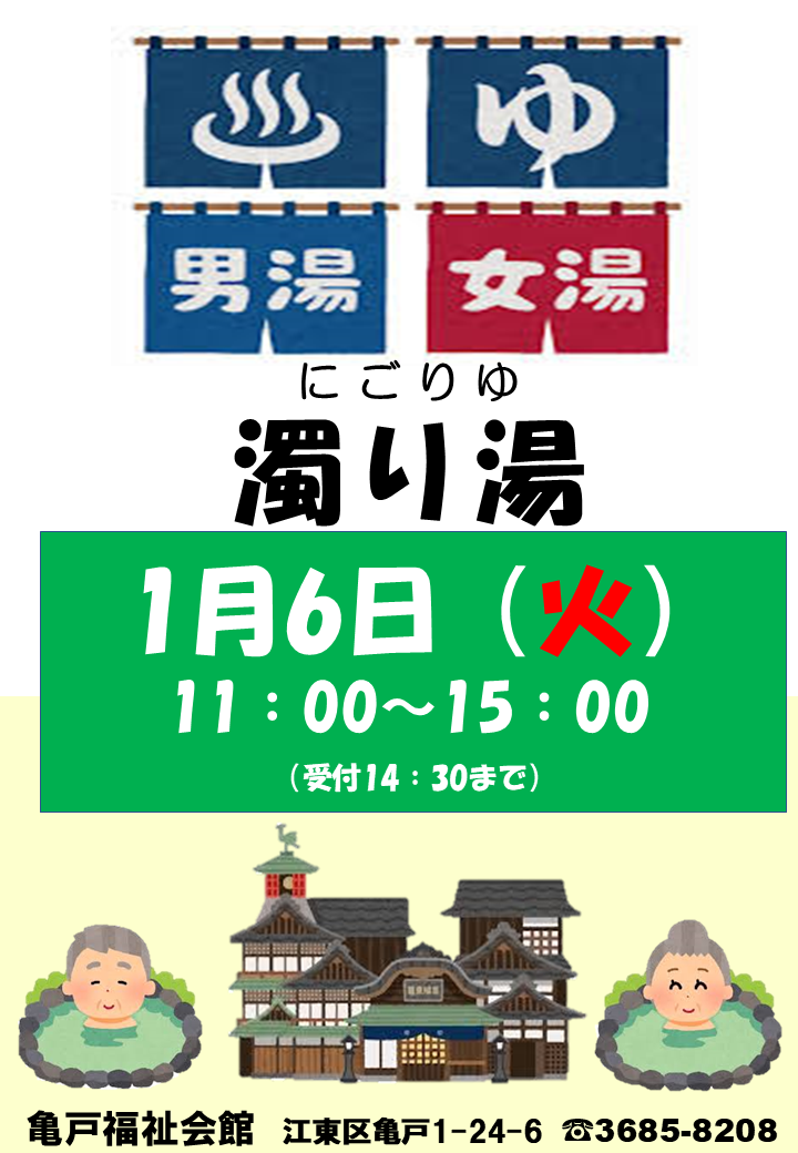 寒い冬のひと時を亀戸福祉会館のお風呂で身体を温めてはいかがですか。