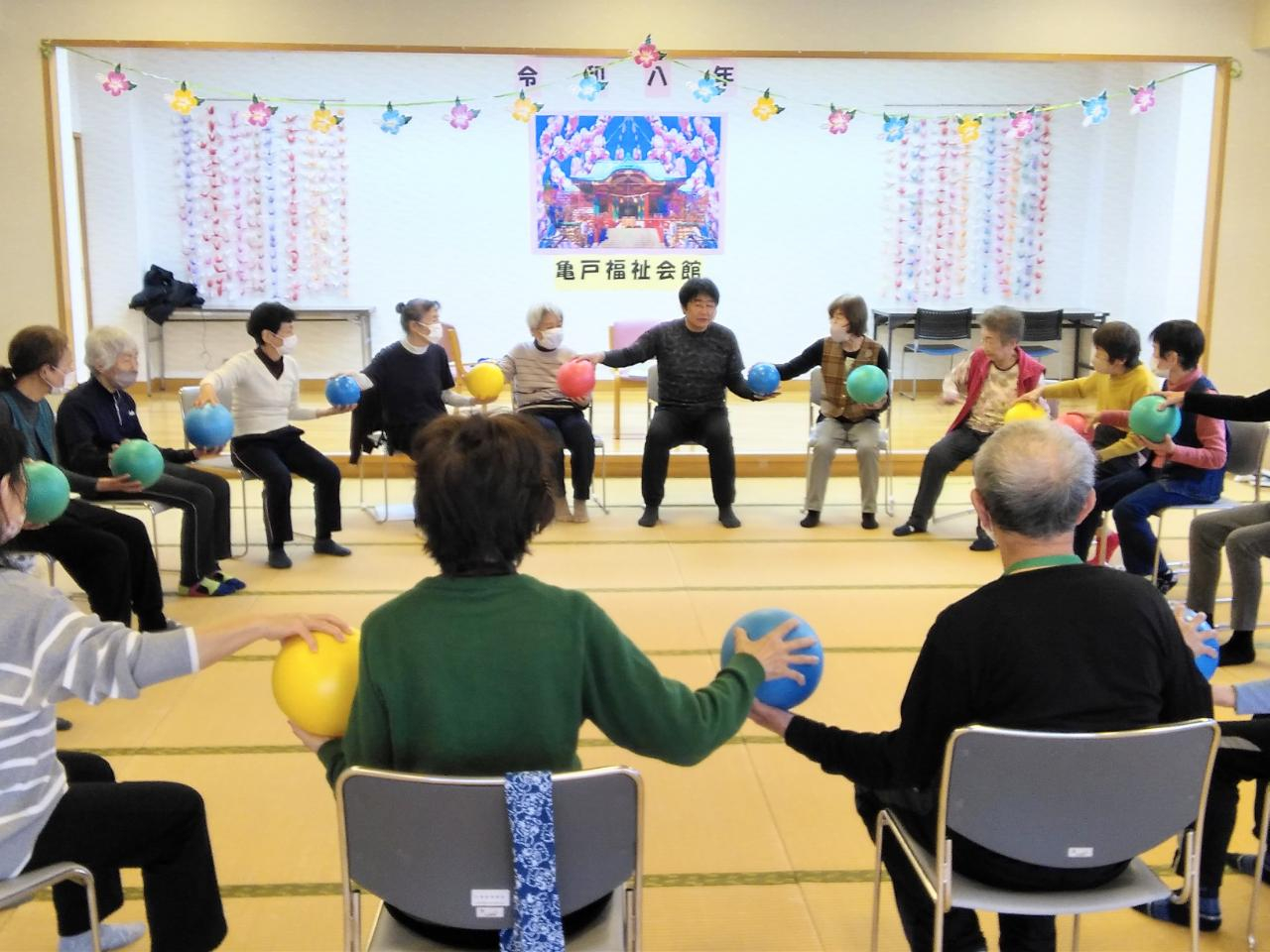 後半は皆で輪になり脳トレしながら笑顔も多くなっていきます。