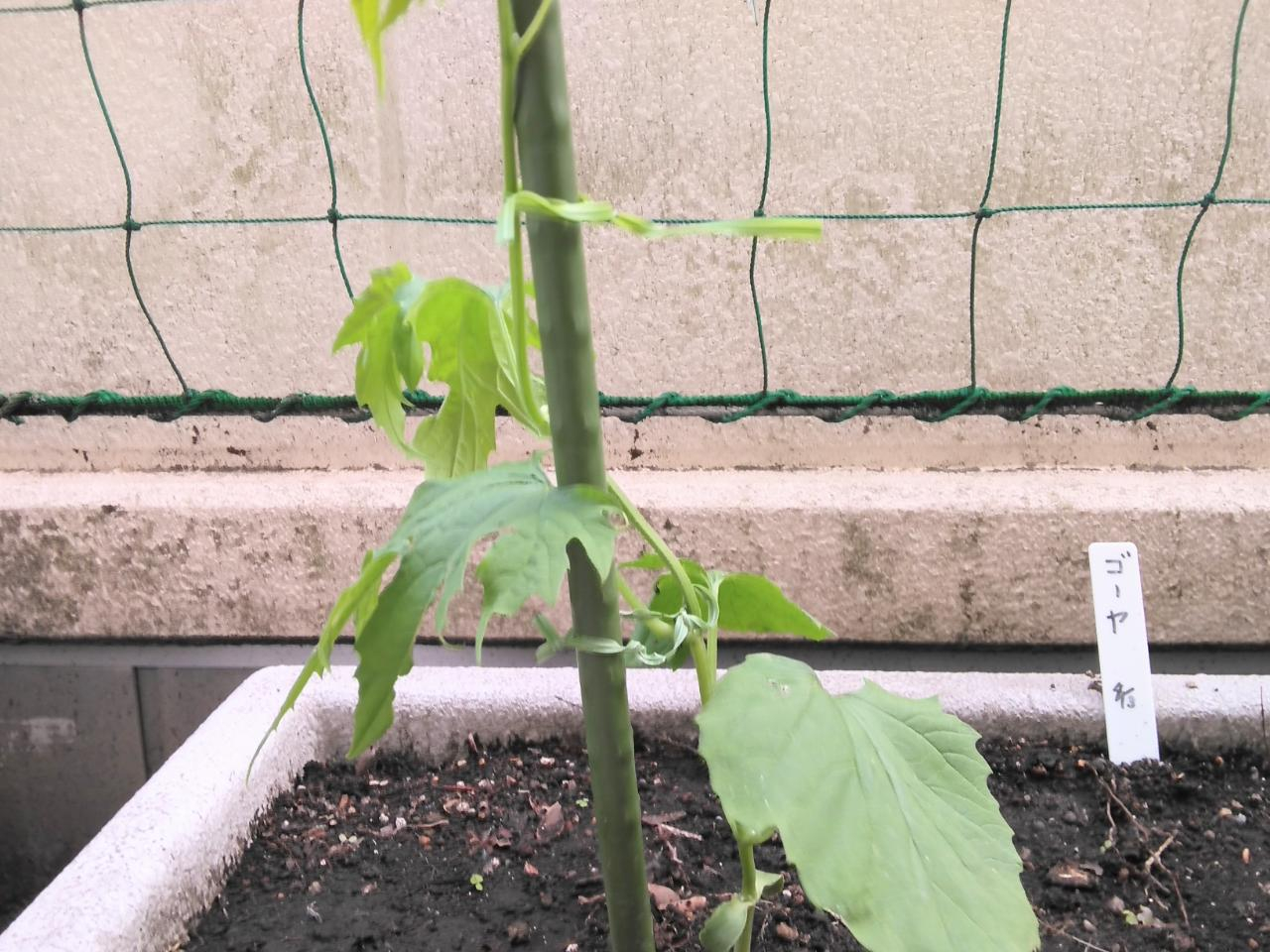 ゴーヤの苗はしっかり根付いて元気に育っております^^**