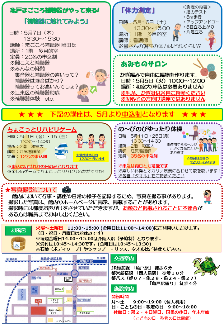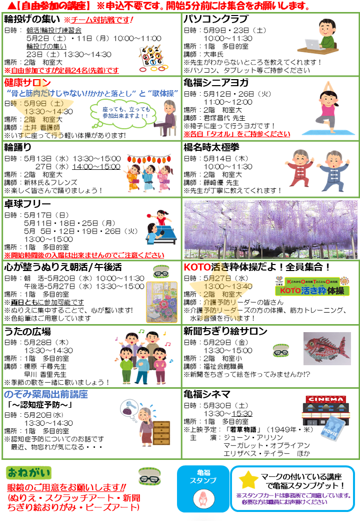 2026.04.25 お知らせ 亀戸福祉会館 お知らせ5月号を発行しました! Tweet シェアする 前の記事 2026.04.27 お知らせ 【詩吟教室】が開催されました 次の記事 2026.04.23 お知らせ ちょこっとリハビリゲーム 一覧へ戻る