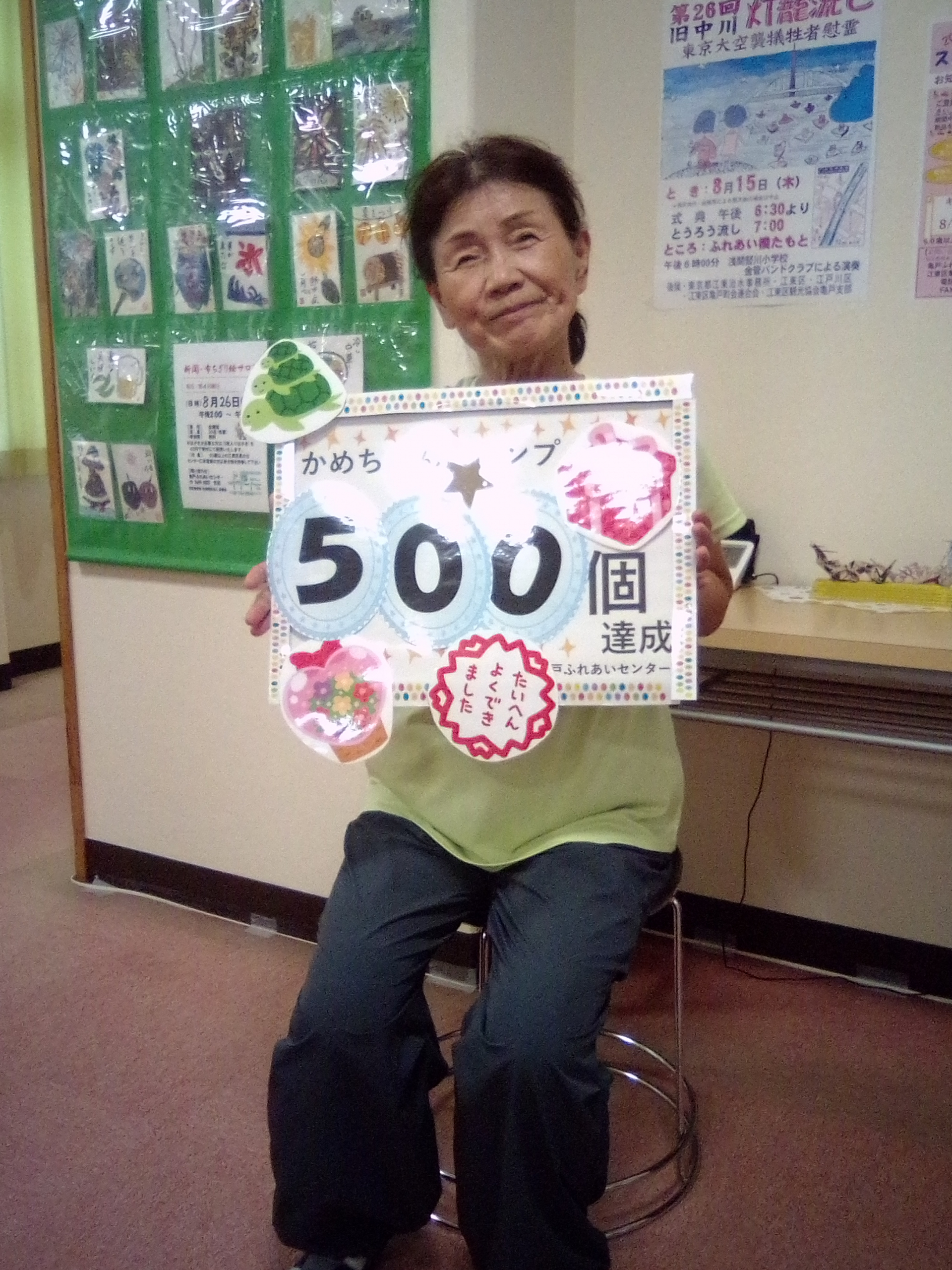 亀戸ふれあいセンター来館時のお楽しみ、かめちゃんスタンプ500個達成しましたT.S様です。