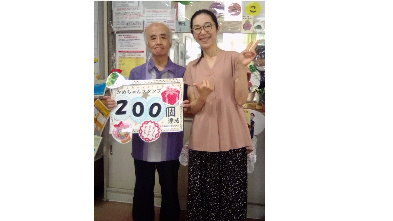 亀戸ふれあいセンター来館時のお楽しみ、かめちゃんスタンプ200個達成しましたS.K様です。