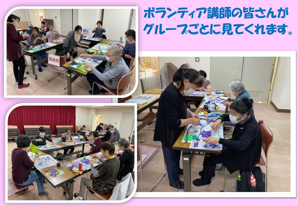 3名のボランティア講師の皆さんが、各グループごとに教えて下さるので初めての方でも安心です。