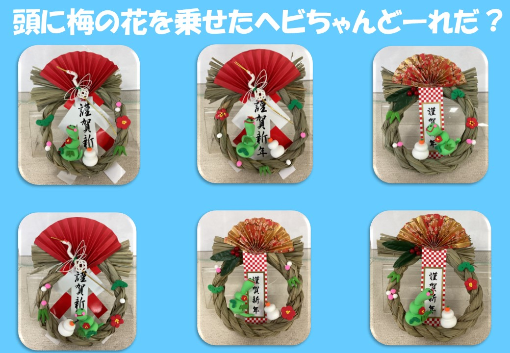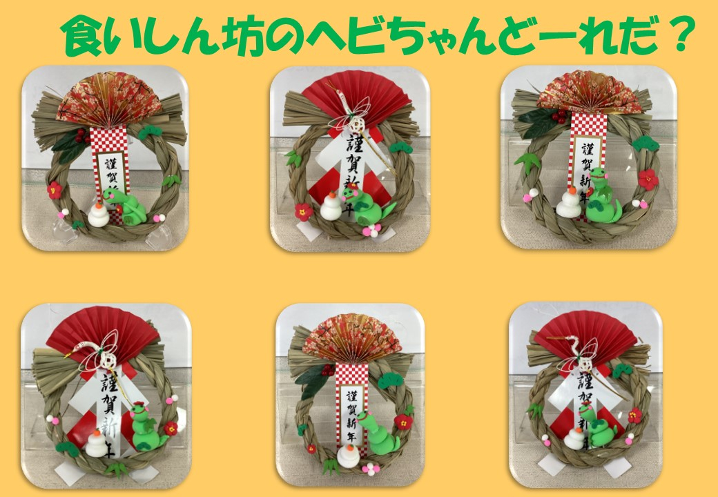 今回の作品は『ねんどで正月飾り~来年の干支を作りましょう~』ということで、かわいいヘビちゃんのしめ縄飾りを作りました。