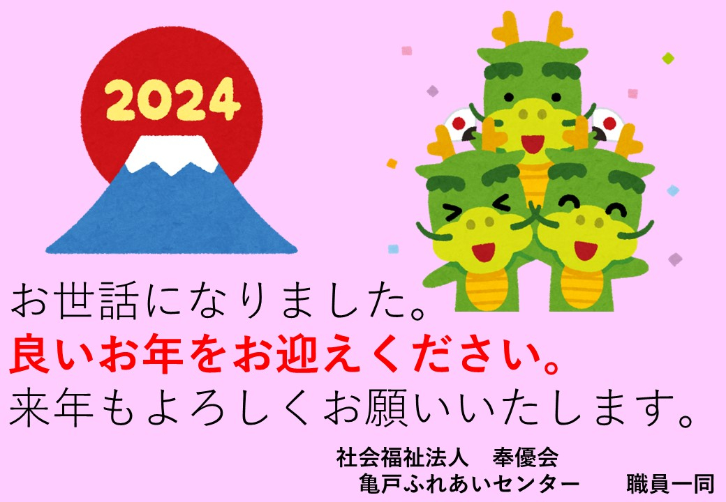 2024.12.28 お知らせ 年末のご挨拶 Tweet シェアする 前の記事 2025.01.01 お知らせ 新年明けましておめでとうございます 次の記事 2024.12.28 お知らせ 第3期カラオケ講座終了しました。そして第4期追加募集中です! 一覧へ戻る