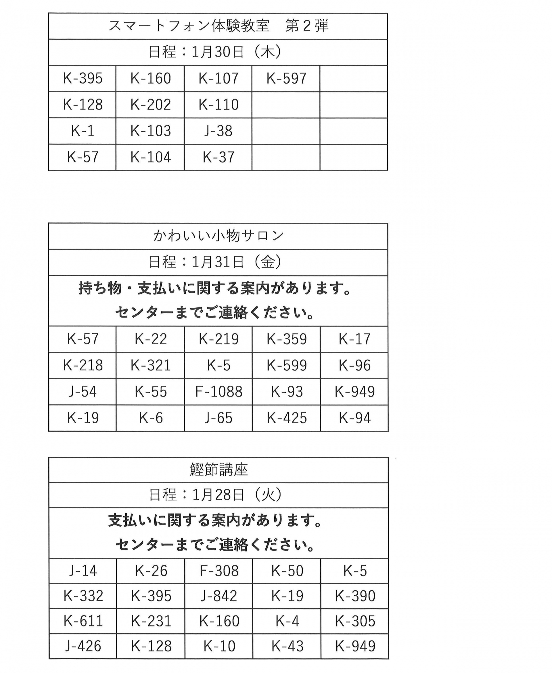1月後半開催毎回申込講座 当選連絡その2【その他の講座】