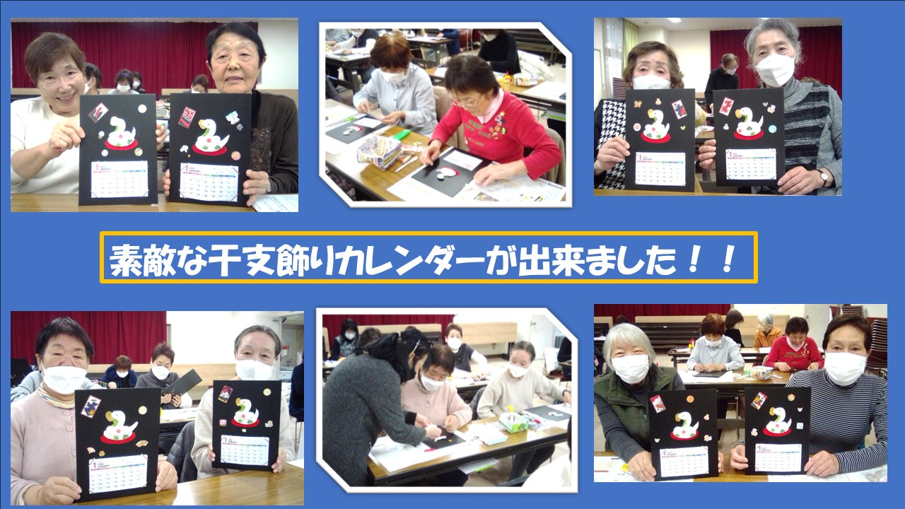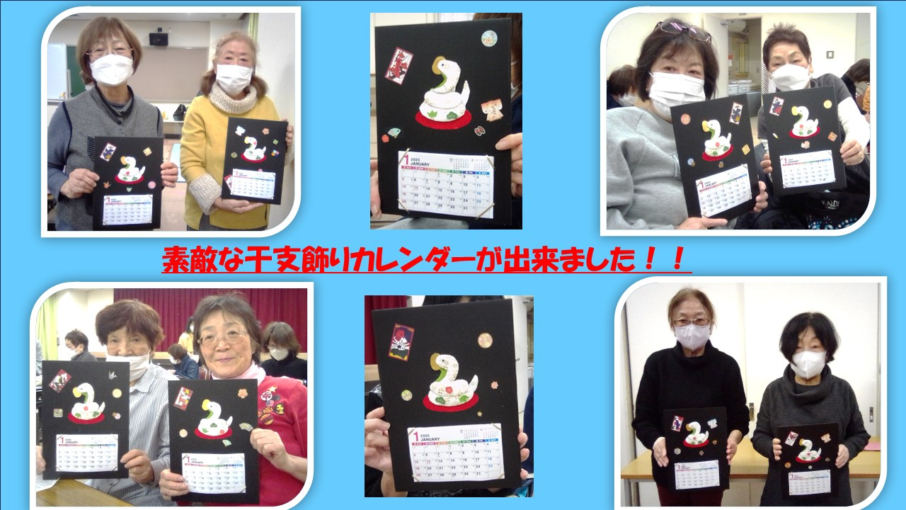 12月6日(金)午後2:00~3:30開催のかわいい小物サロンは、新年にふさわしい干支飾りのカレンダーを作りました。