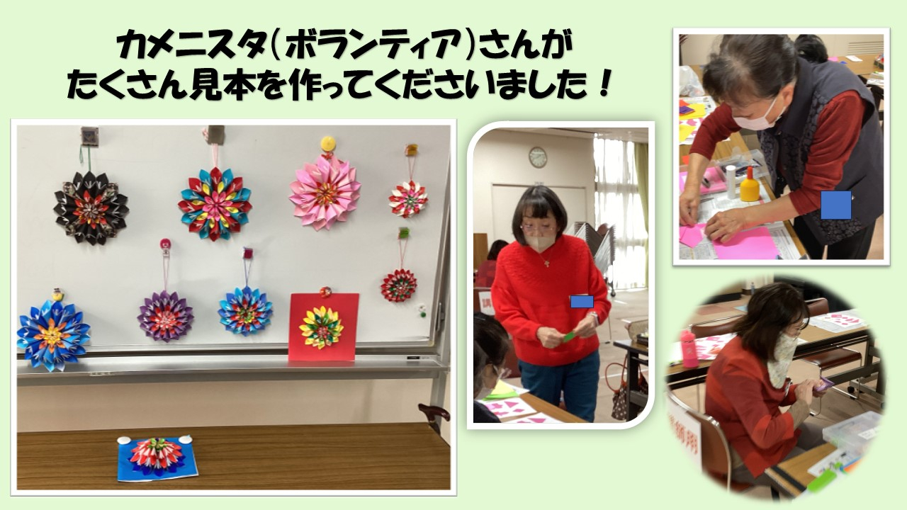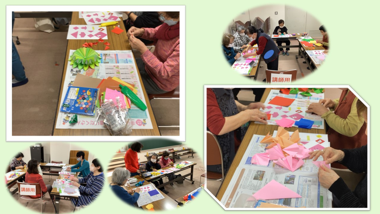 折り紙サロンを開催いたしました。本日のテーマは【お花の壁飾り】です♪