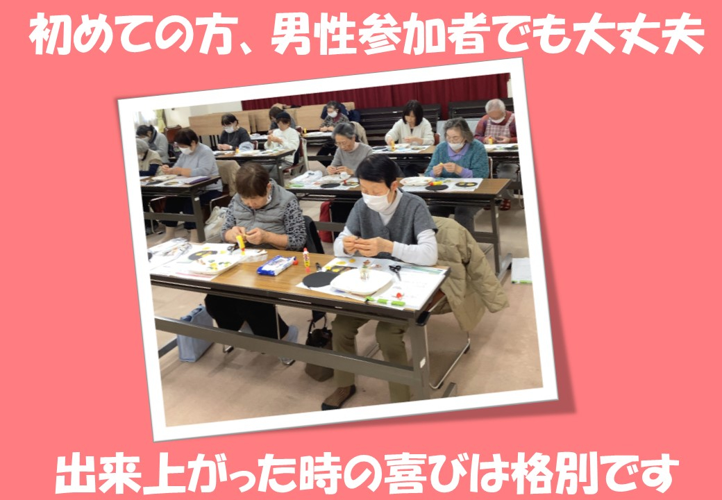 ボランティア講師Kさんが素敵な作品を提案してくださり、今回は初めて参加の方も多く、また男性参加の方もいらっしゃいました。