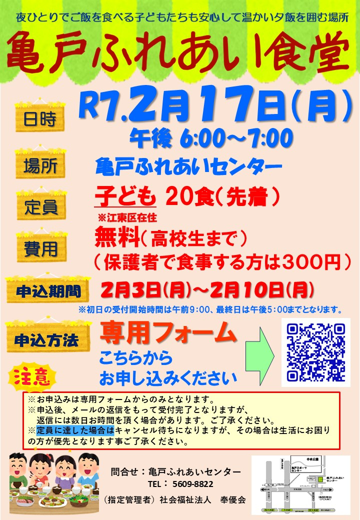 来月の『亀戸ふれあい食堂』は2月17日(月)です。