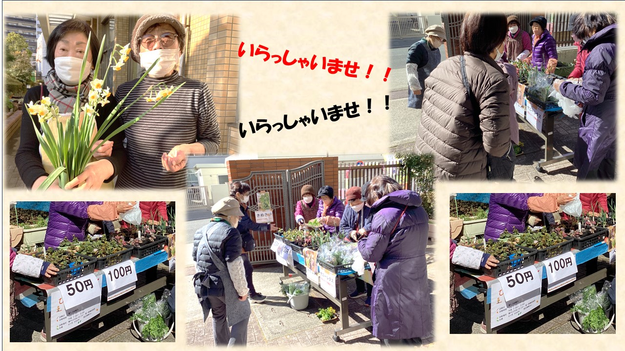 午前11:30~ひまわりサークルの無農薬やさい(にんじん・春菊・サニーレタス)お花の苗(水仙・カランコエ・アロエなど)の販売が始まり、野菜が高騰のせいもありあっという間に売り切れていました。これからさやえんどうの収穫を迎え春に向けて準備を進めています!
