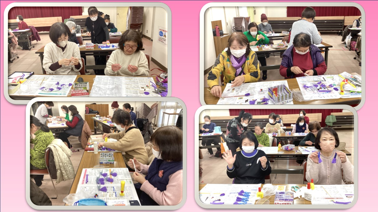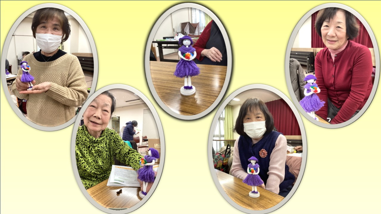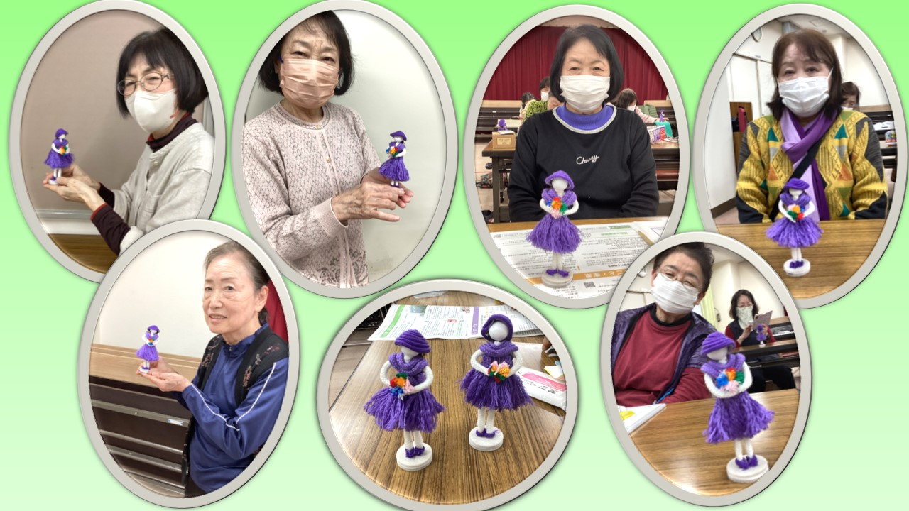 今回は紫色のロープで作るかわいいスカートをはいた女の子を作り楽しみました。