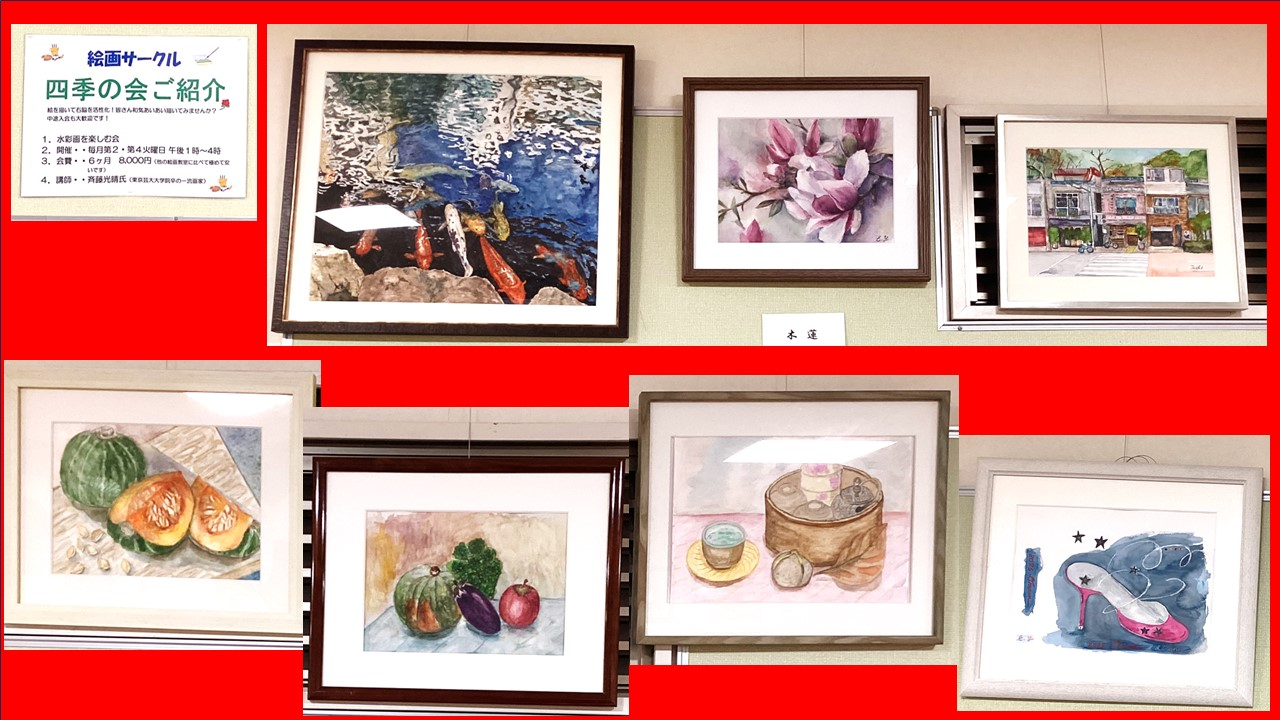 絵画サークルの四季の会は毎月第2・4の火曜日の午後に皆さんで画題を持ち寄り腕を磨いております。