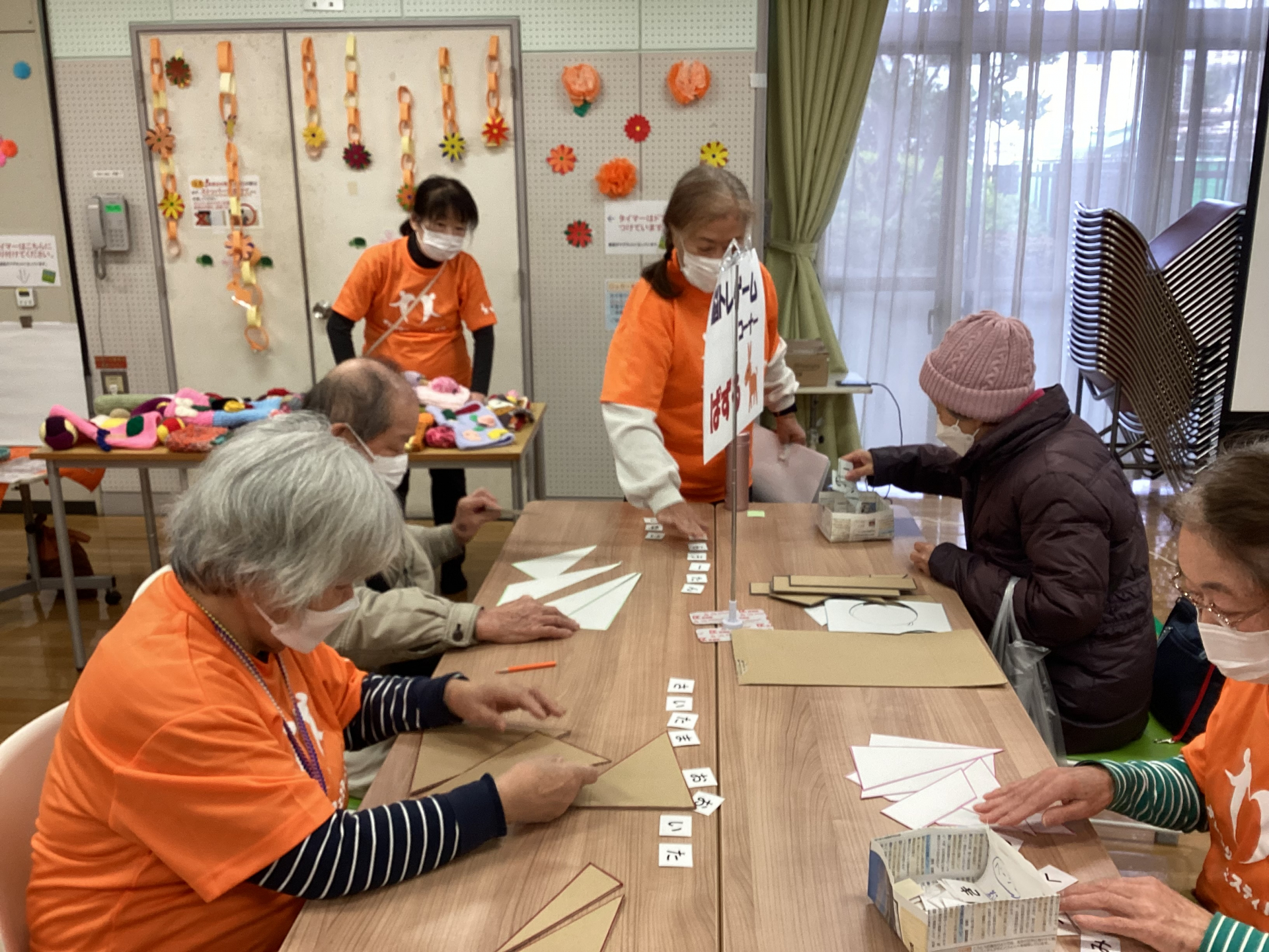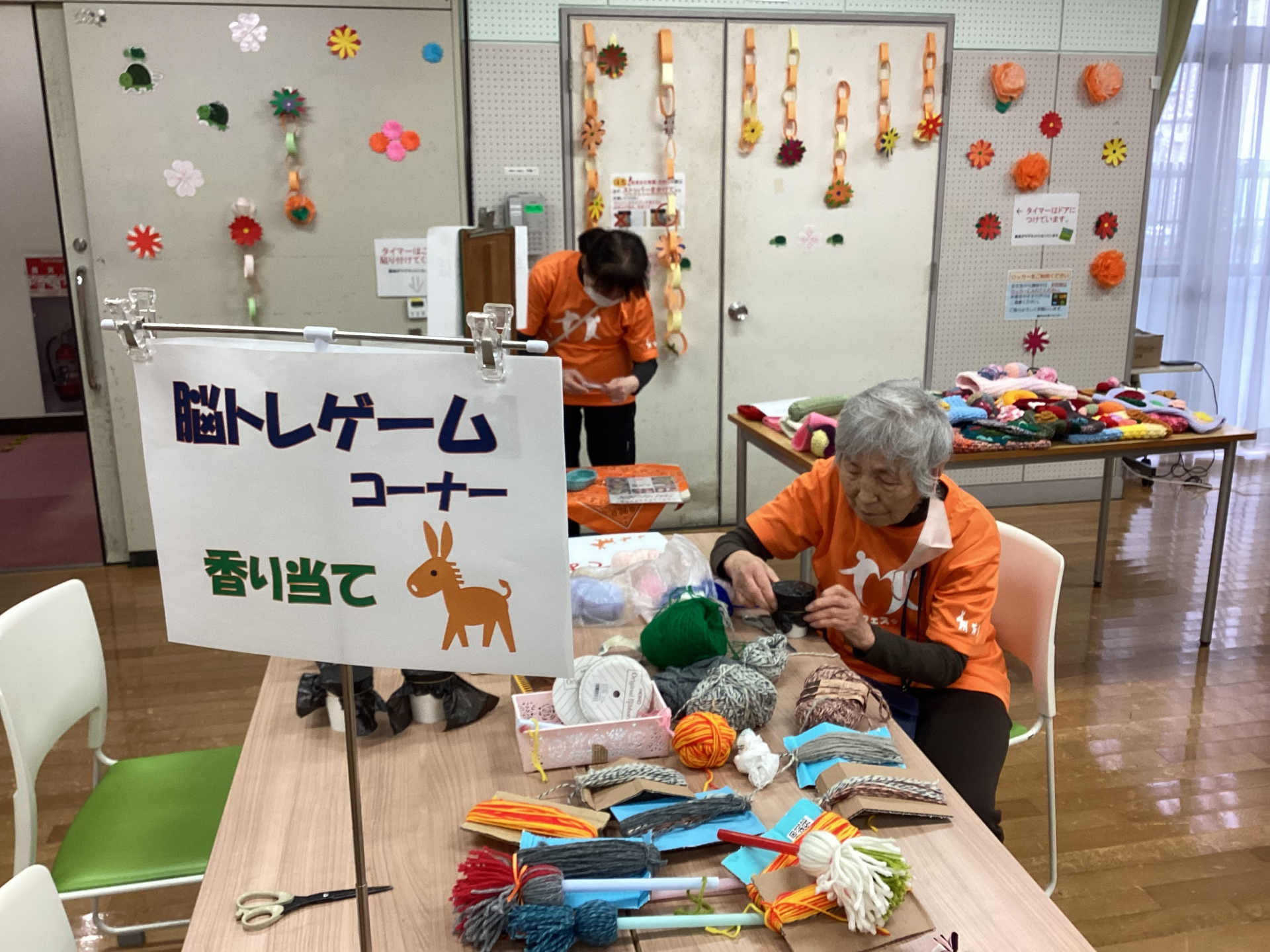 体育室ではわくわく体験コーナーとしてパズルや香り当て、6画返し作りやにっこりマフの展示などをおこないました。