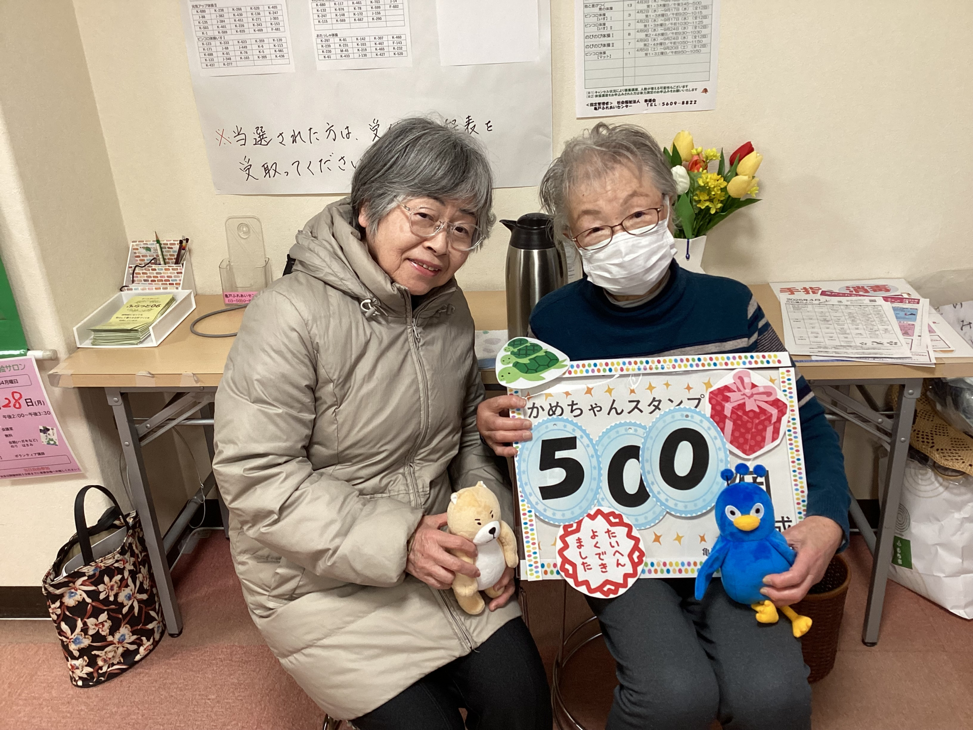 亀戸ふれあいセンター来館時のお楽しみ、ドリかめスタンプ500個達成しましたA.M様です。