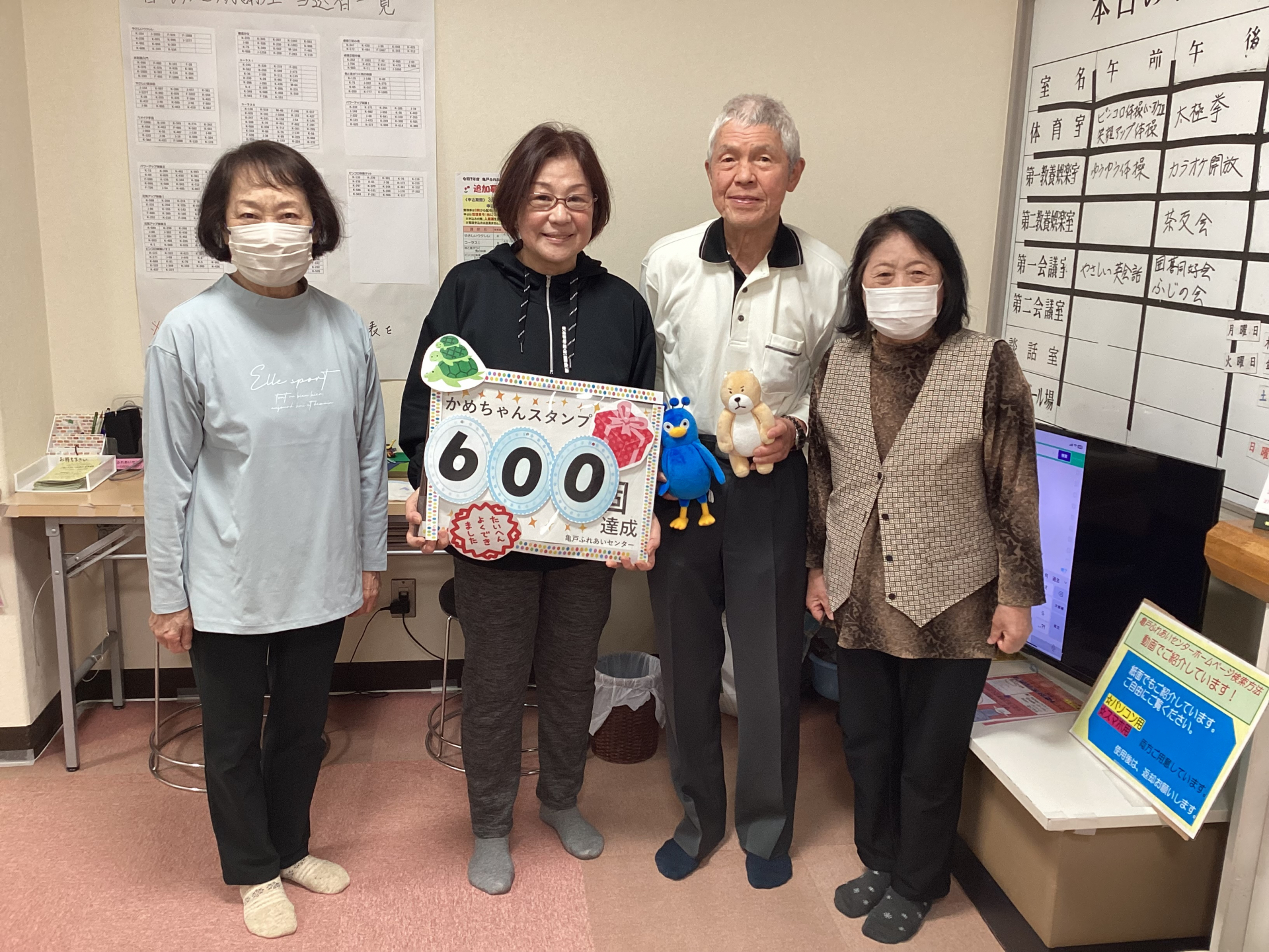 亀戸ふれあいセンターの来館のお楽しみ ドリかめスタンプ600個達成者のご紹介です。