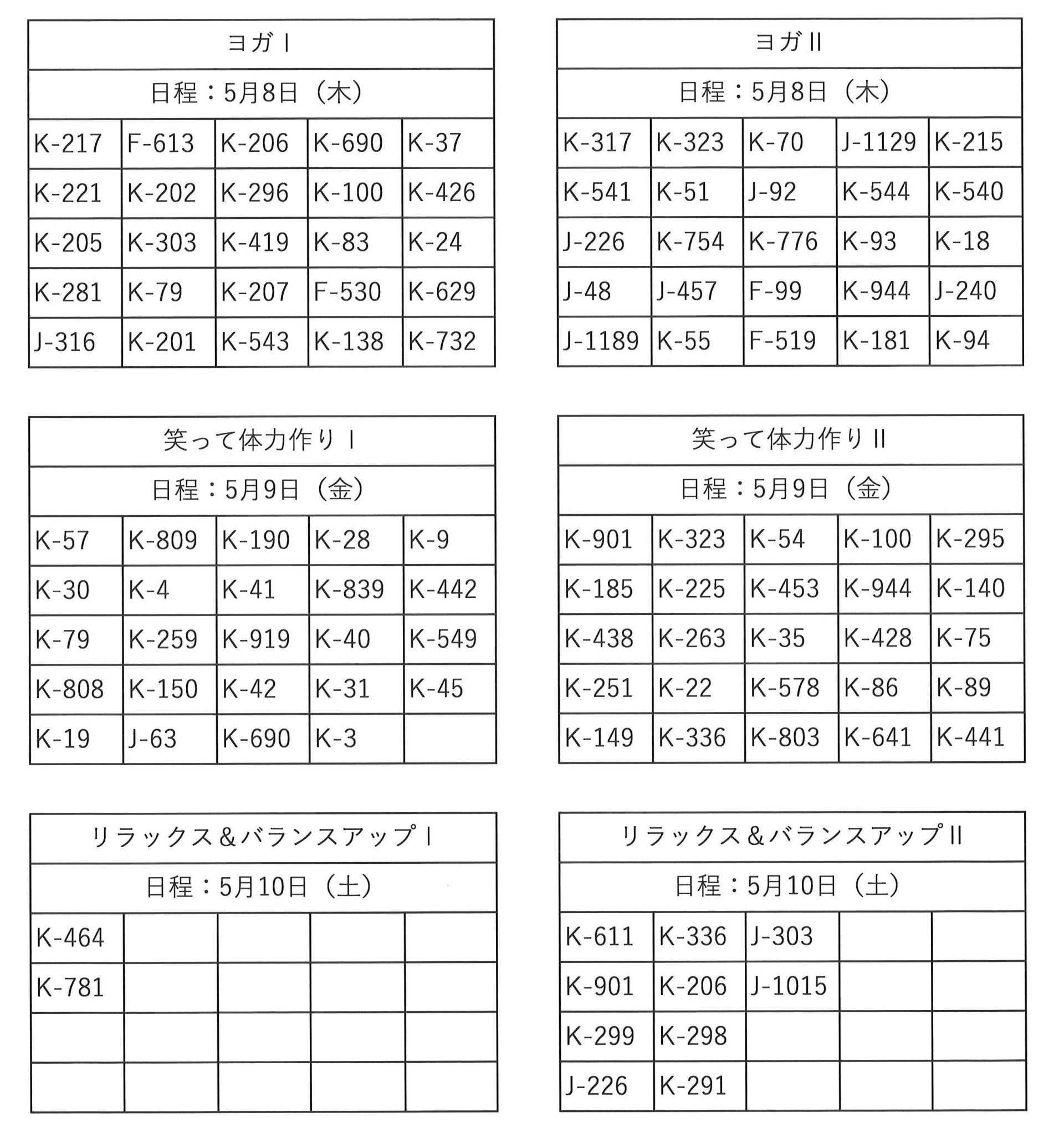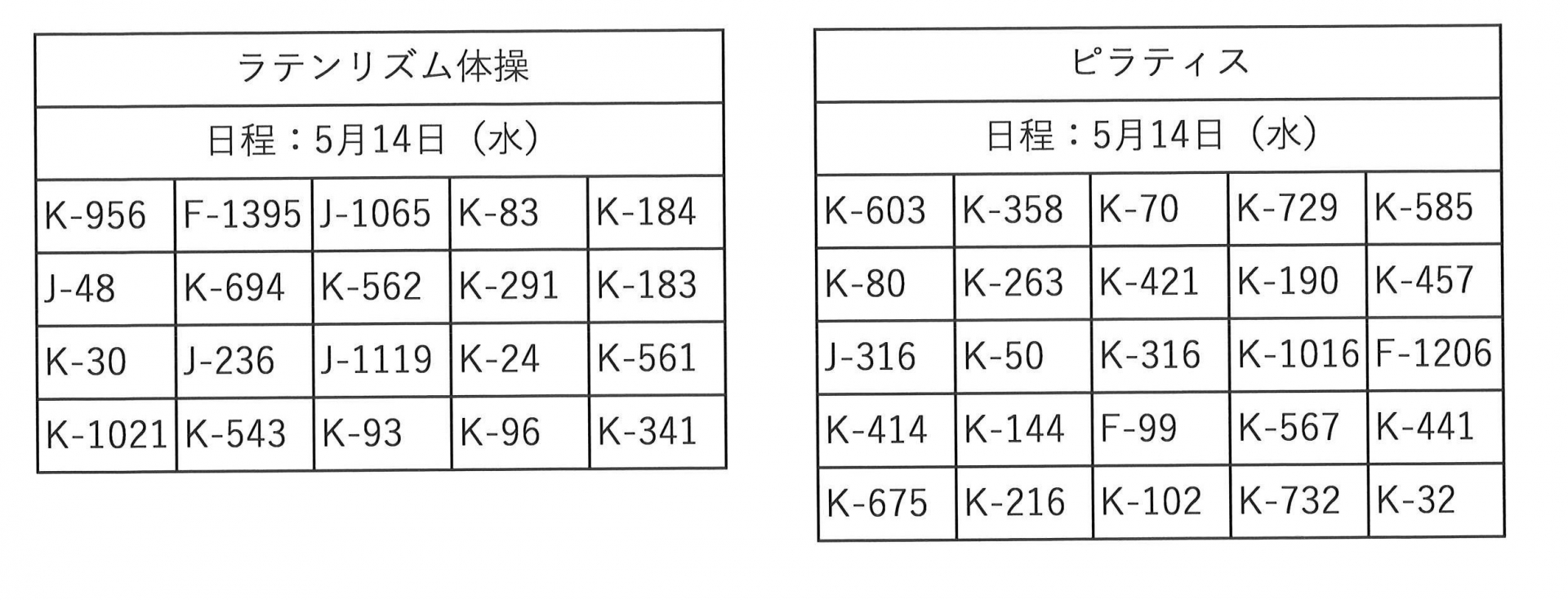 5月前半開催毎回申込講座 当選連絡その1【体操講座】