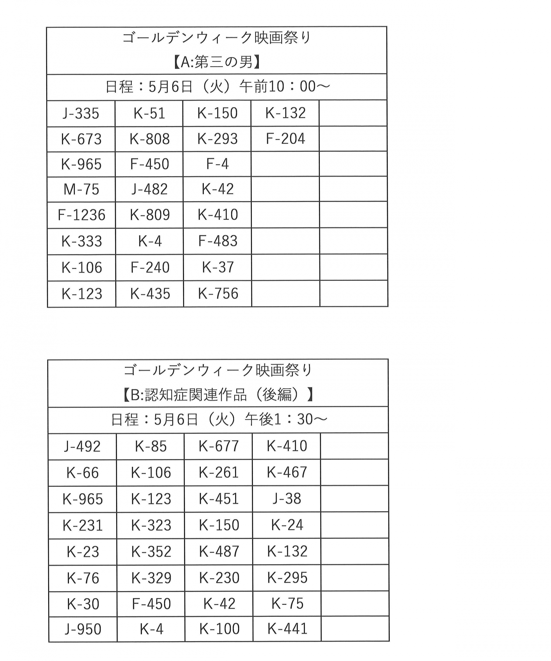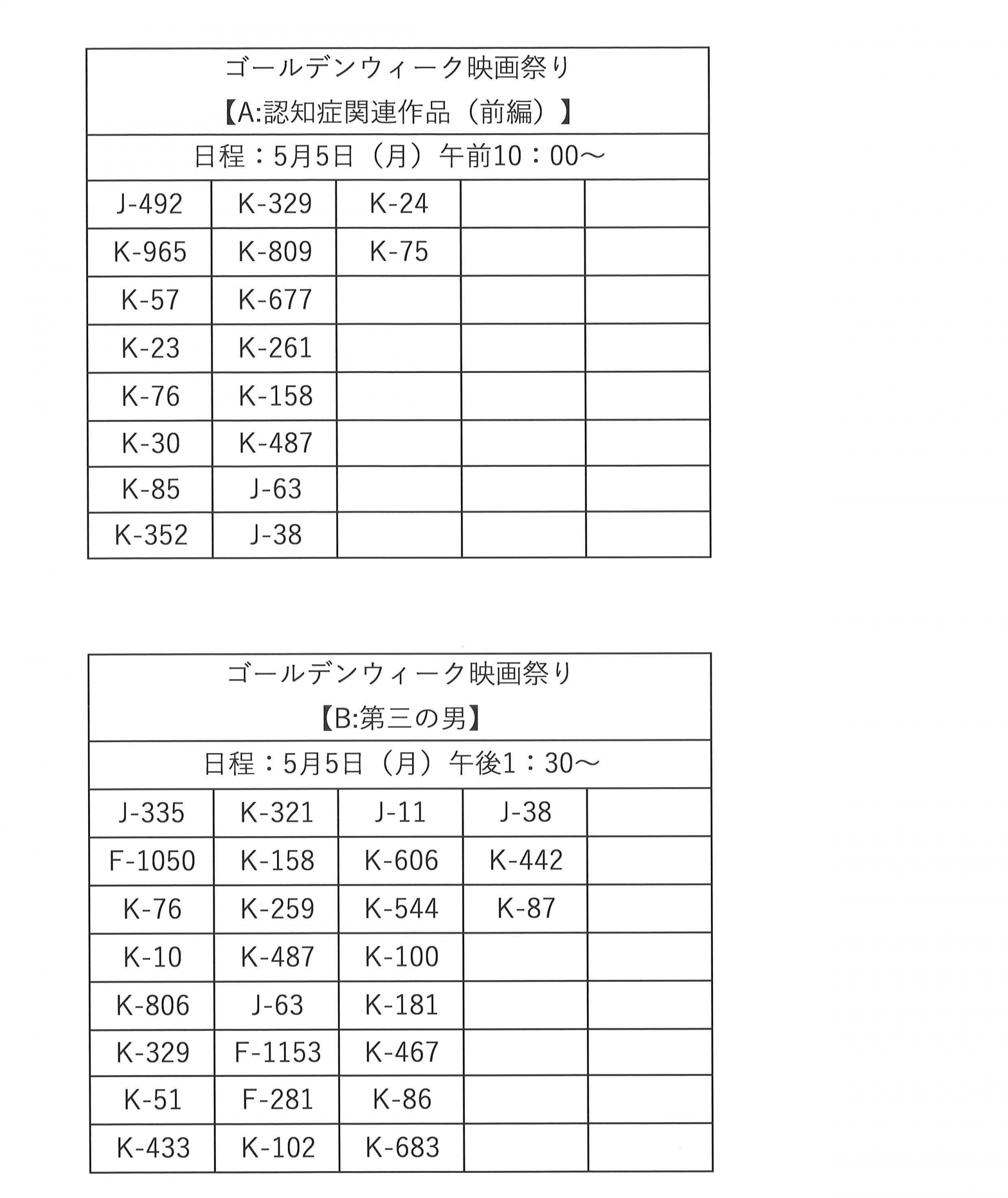 その2では、折り紙サロン、5/14亀は万年シアター、5/5GW映画まつり、5/6GW映画まつりの結果を発表いたします。