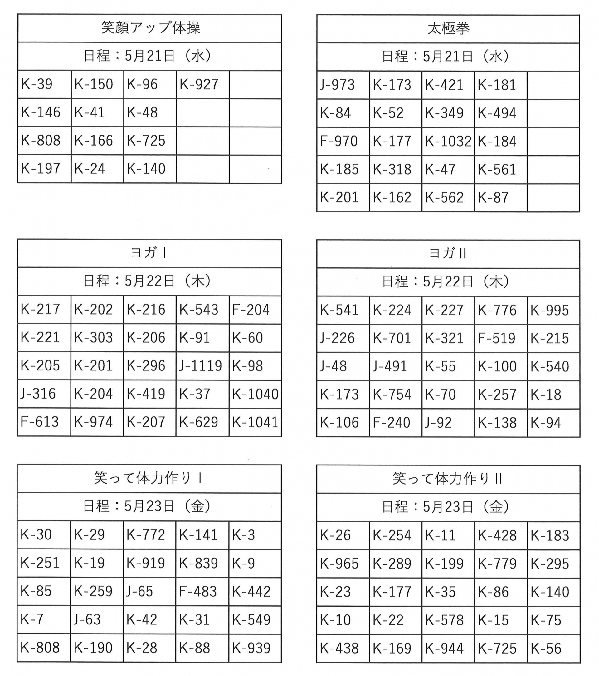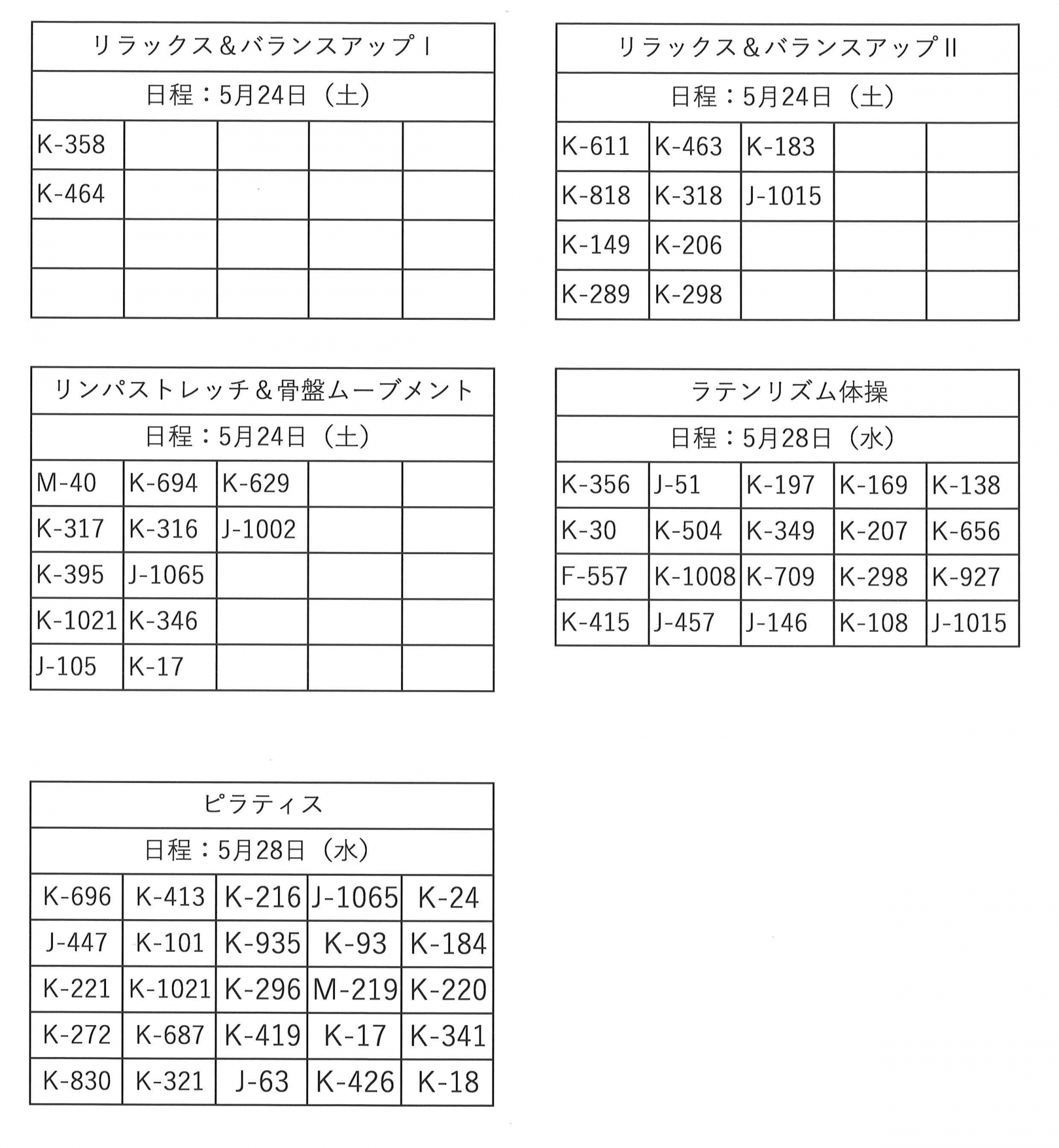 5月後半開催毎回申込講座 当選連絡その1【体操講座】