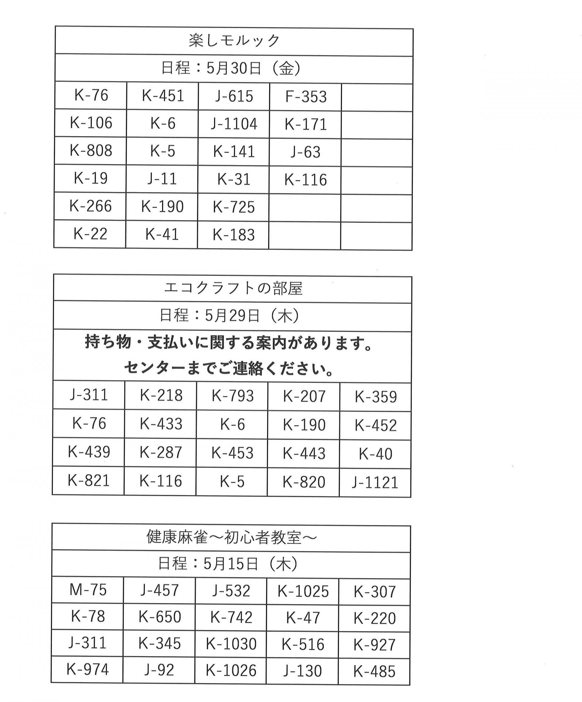 5月後半開催毎回申込講座 当選連絡その2【その他の講座】