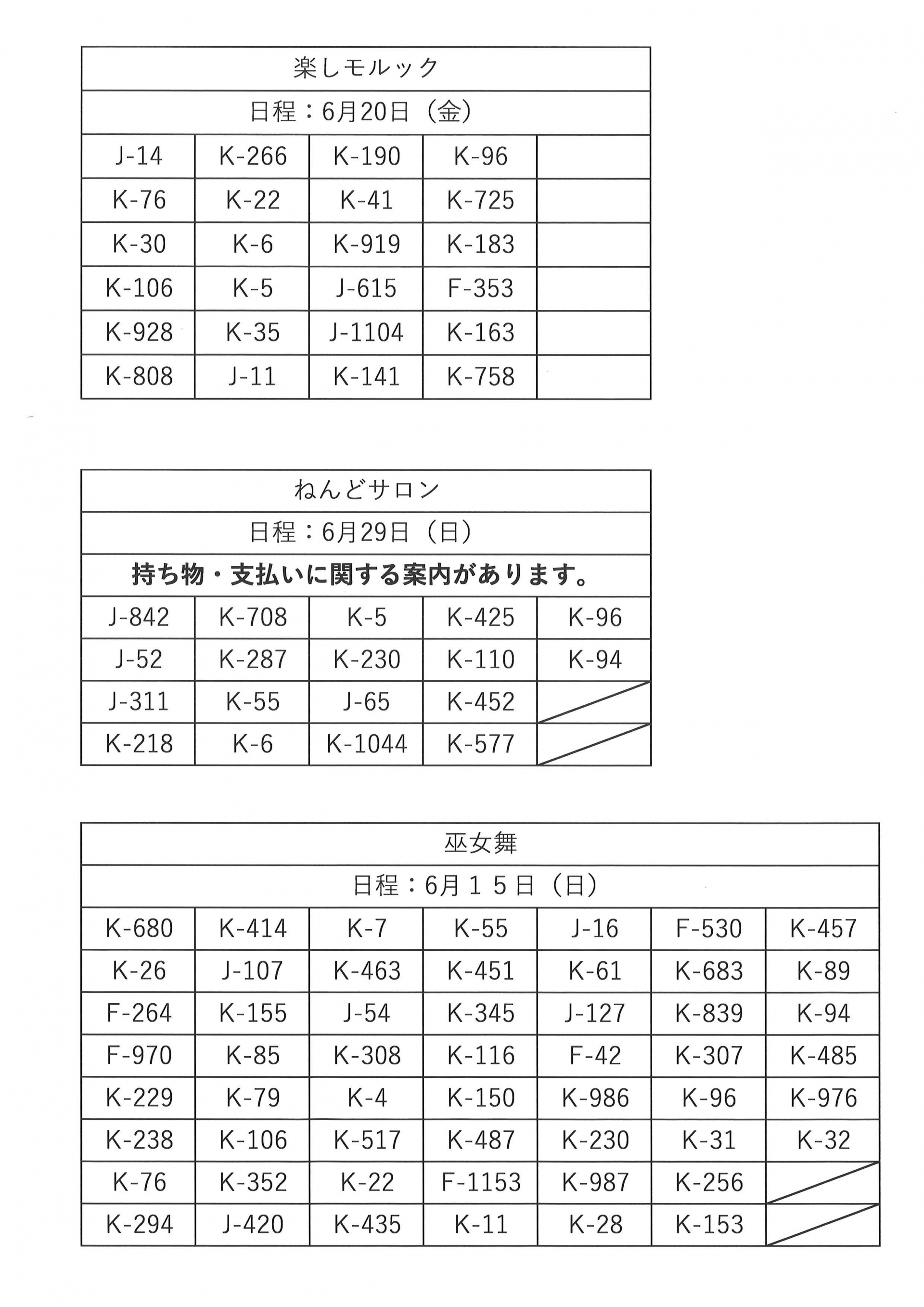 6月後半開催毎回申込講座 当選連絡その2【その他の講座】