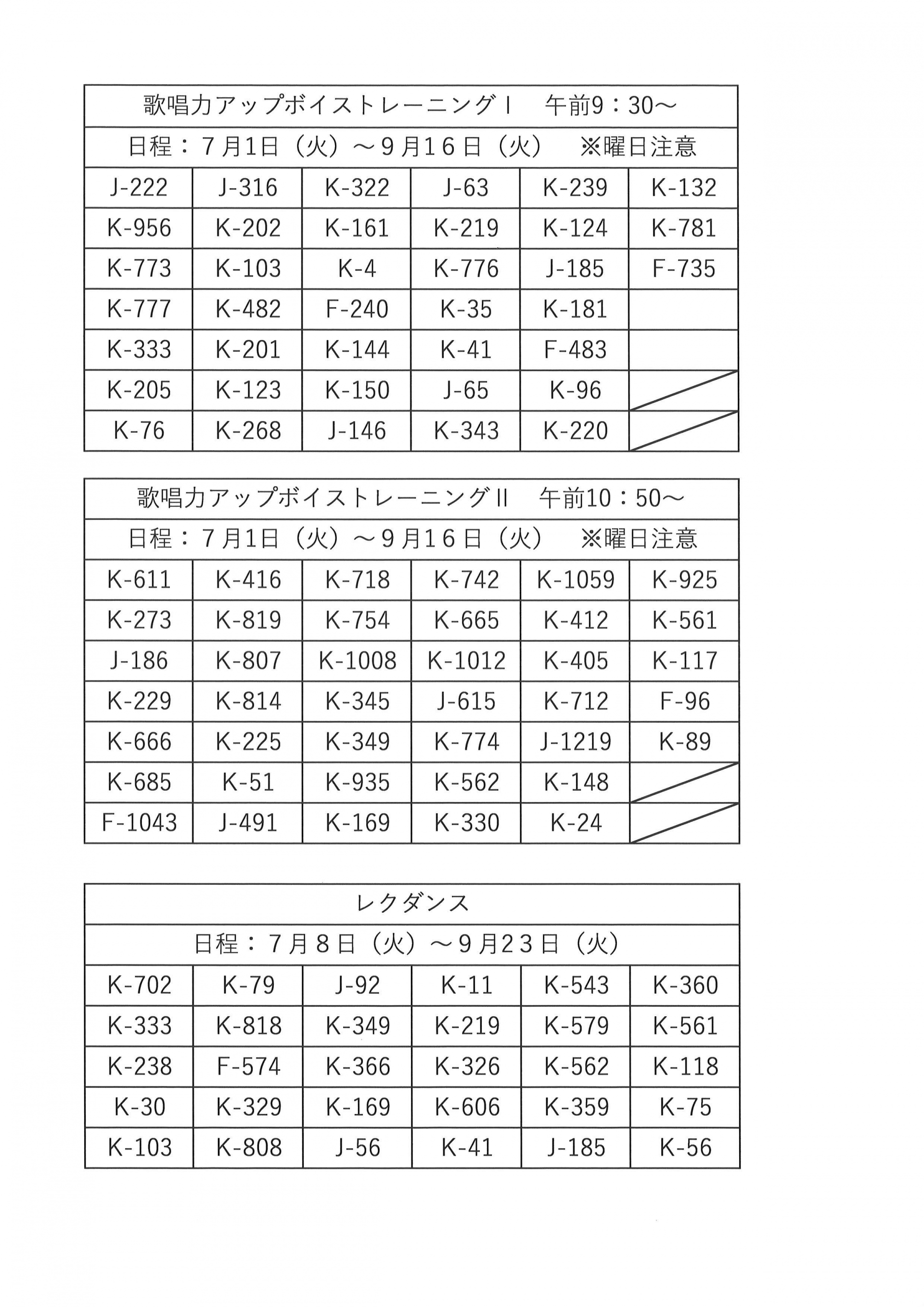 7月前半毎回申込講座 当選連絡その2【その他の講座】