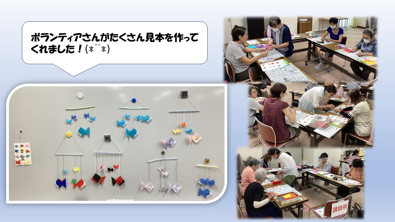 今回のテーマはいつも以上にボランティアさんが試行錯誤され、何度も話し合って決めたそうです。ボランティアさんの折り紙に対する熱意も伝わってきますね!