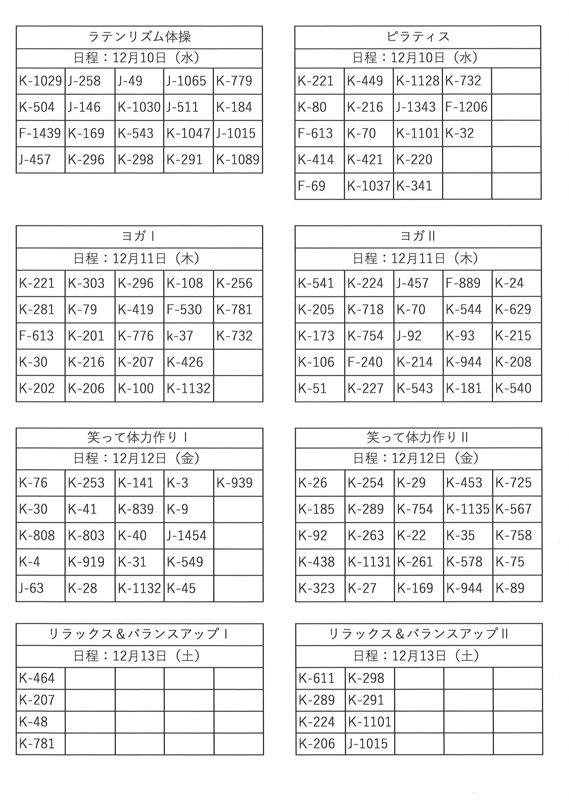 12月前半開催の毎回申込み講座の当選発表をいたします。