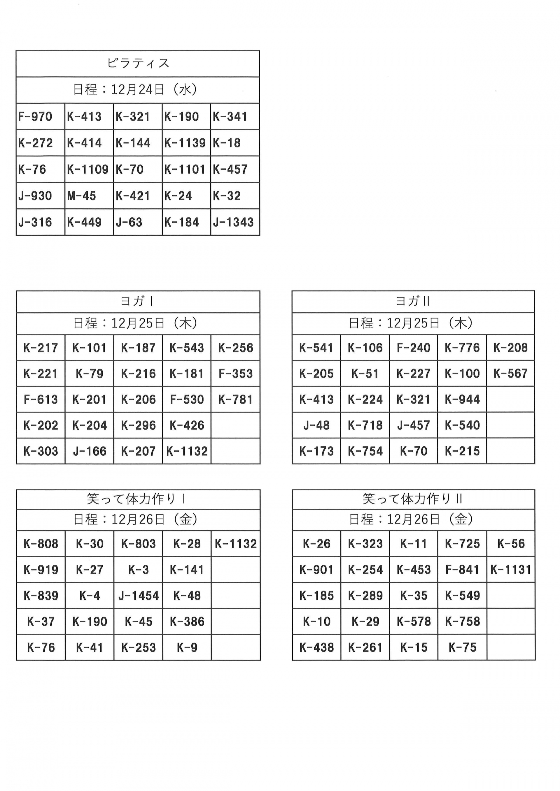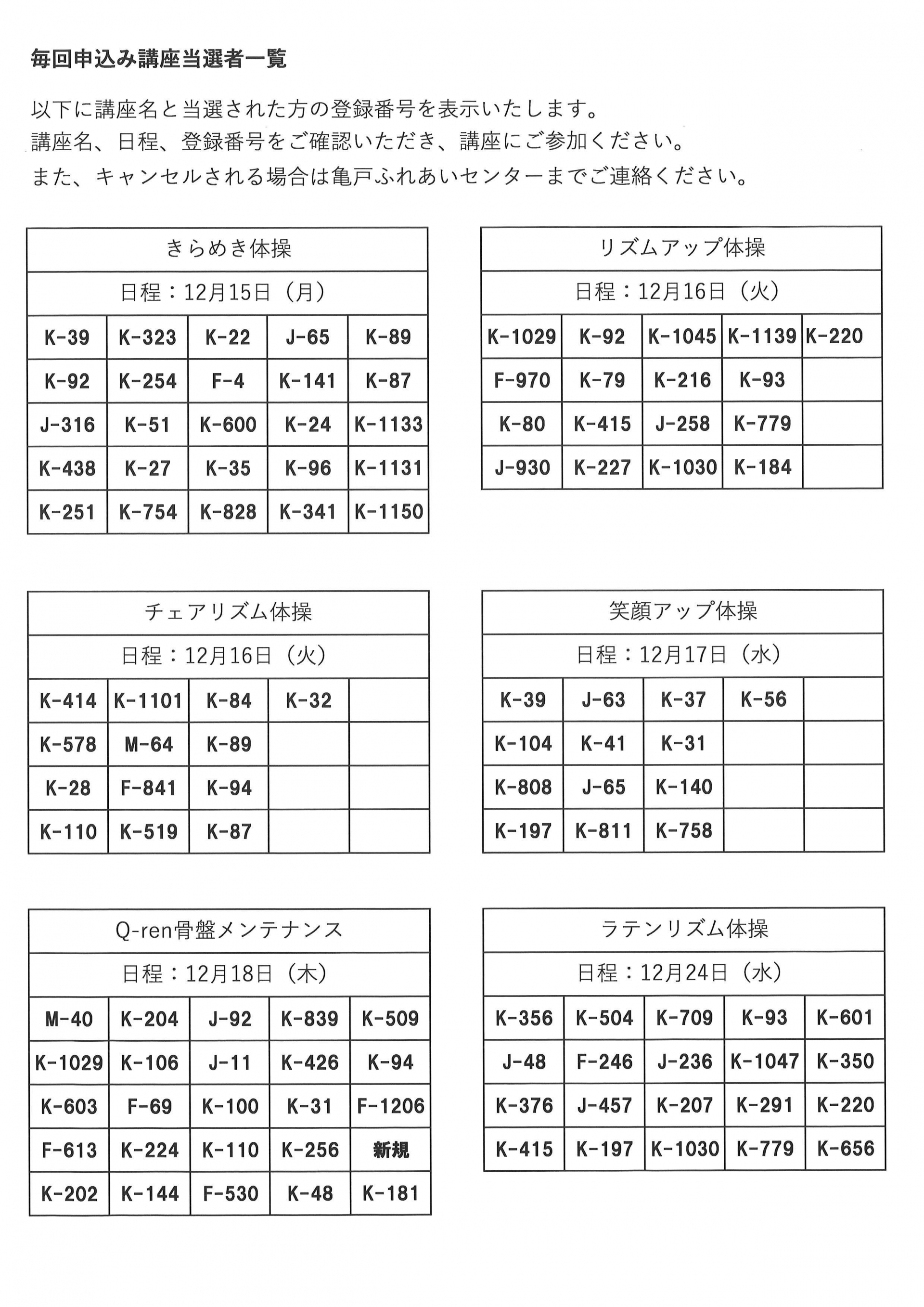 12月後半開催の毎回申込み講座の当選発表をいたします。
