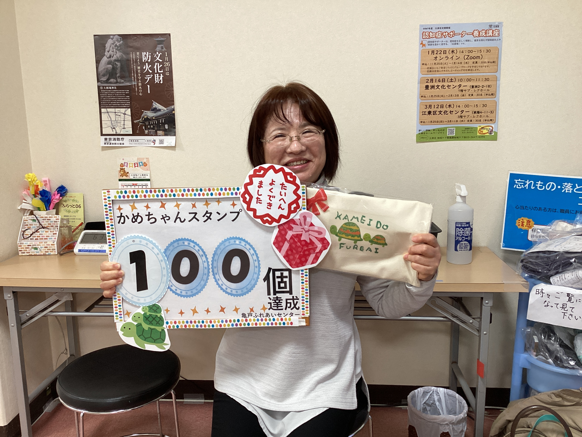 亀戸ふれあいセンター来館時のお楽しみ、ドリかめスタンプ100個達成された方のご紹介をいたします!今回100個達成されたのはF.K様です!おめでとうございます!