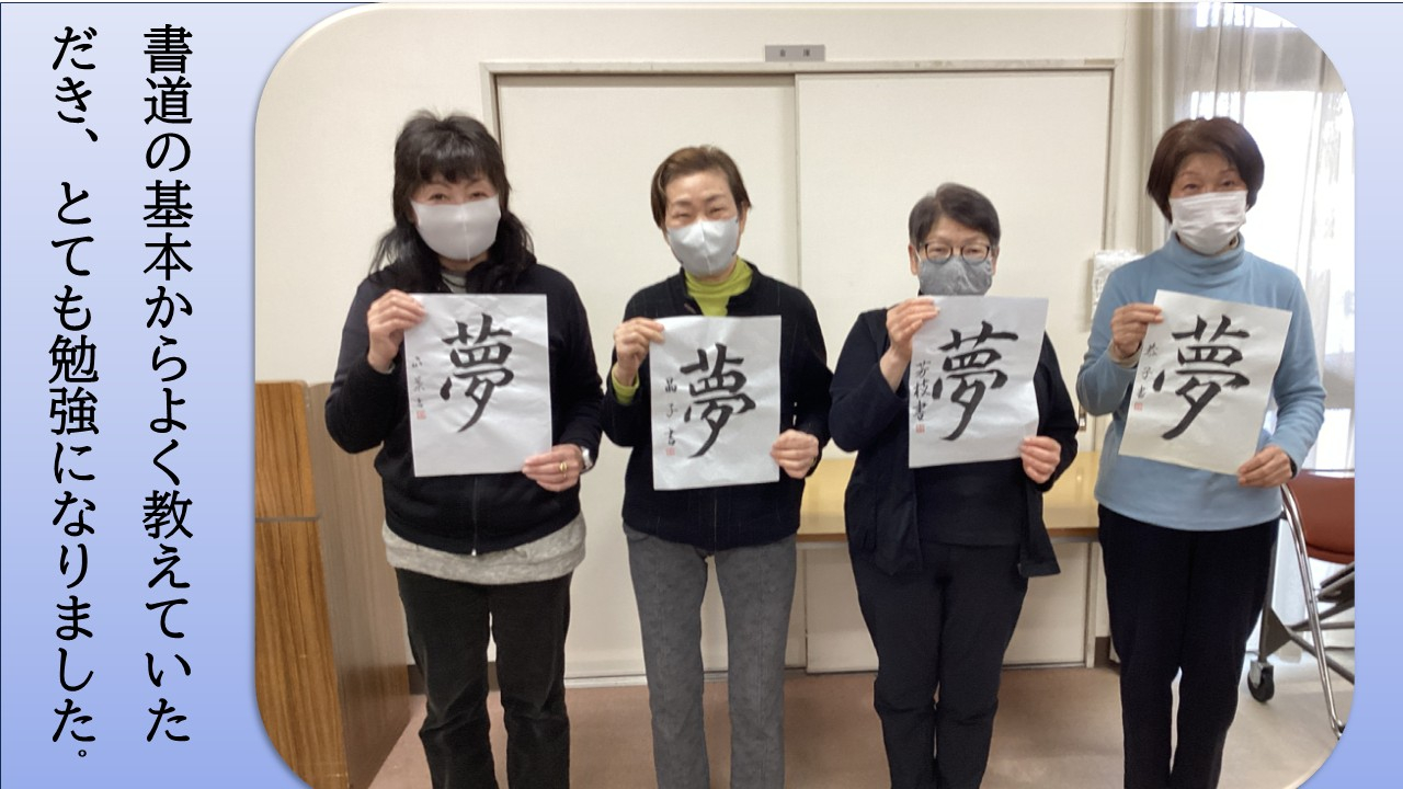 今回の書道(漢字)の受講者の方への最後のお手本、夢の力作をご覧ください。