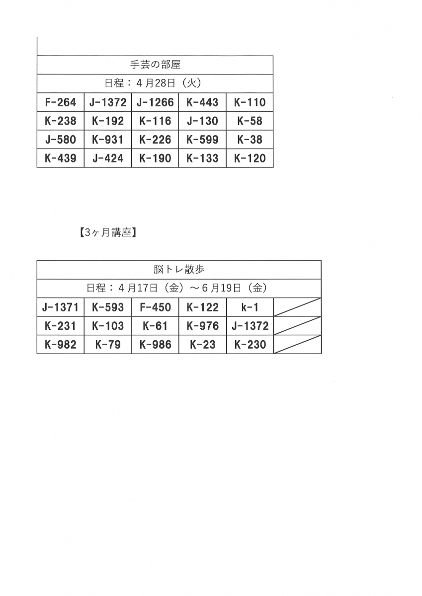 4月後半開催の毎回申込み講座の当選発表をいたします。