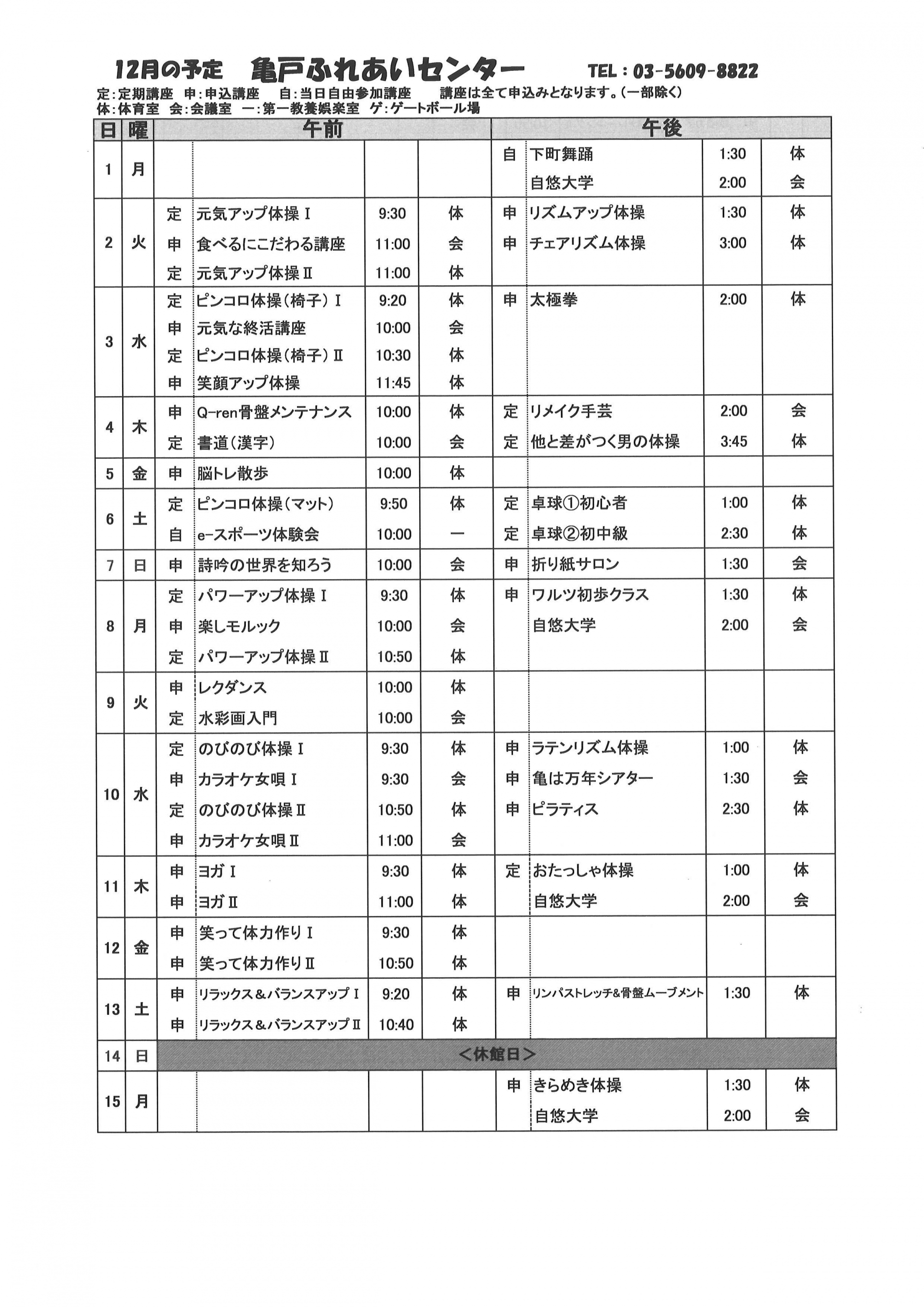 2025.11.25 お知らせ 2025年亀戸ふれあいセンター12月号予定表 Tweet シェアする 2025年亀戸ふれあいセンター12月号予定表が完成しました。 ↑印刷をしたい方はこちらをクリックしてPDFファイルを表示させてください。 一覧へ戻る