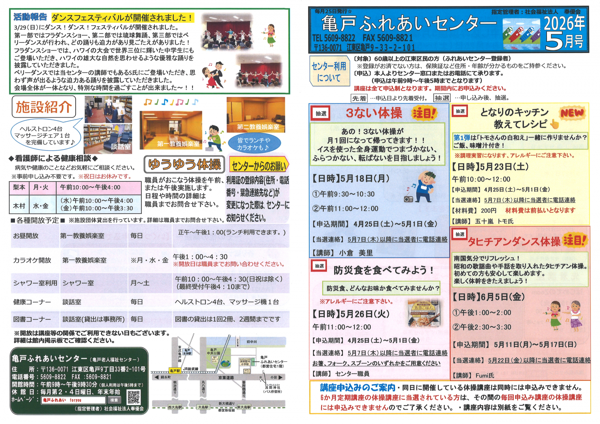 2026.04.25 お知らせ 2026年亀戸ふれあいセンター5月号おたより Tweet シェアする 2026年亀戸ふれあいセンター5月号おたより完成しました。 ↑印刷をしたい方はこちらをクリックしてPDFファイルを表示させてください。 一覧へ戻る