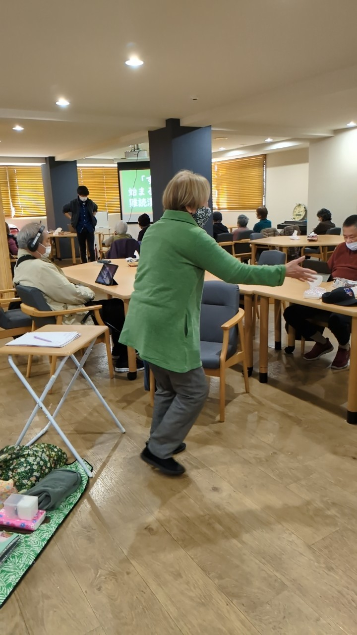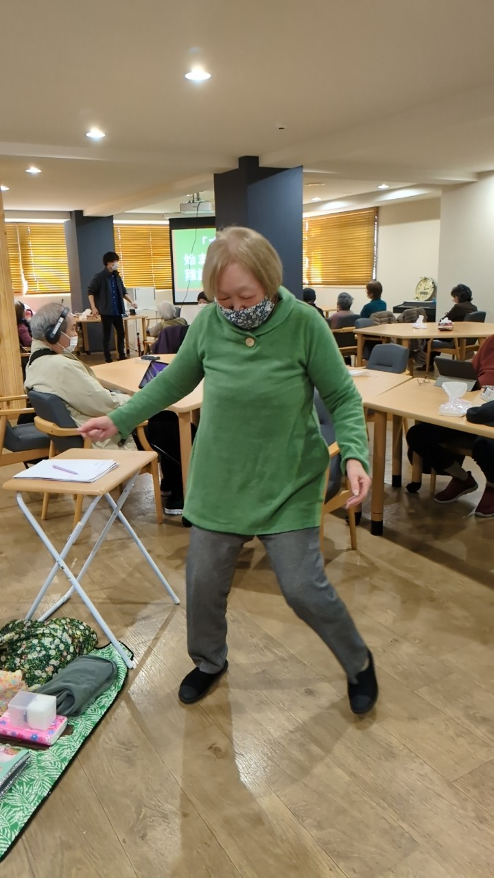 「ステップ教えて下さい」とお願いすると、まずはおひとりで基本のステップ♪研究所の方にもペアを組んで教えて下さいました♪