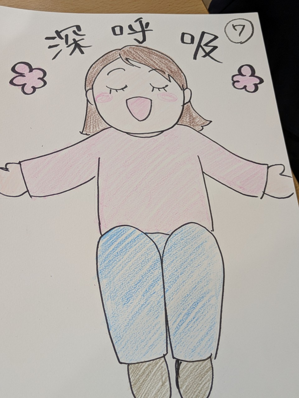 体操の後は深呼吸♪研究所の方の手書き、かわいい♪